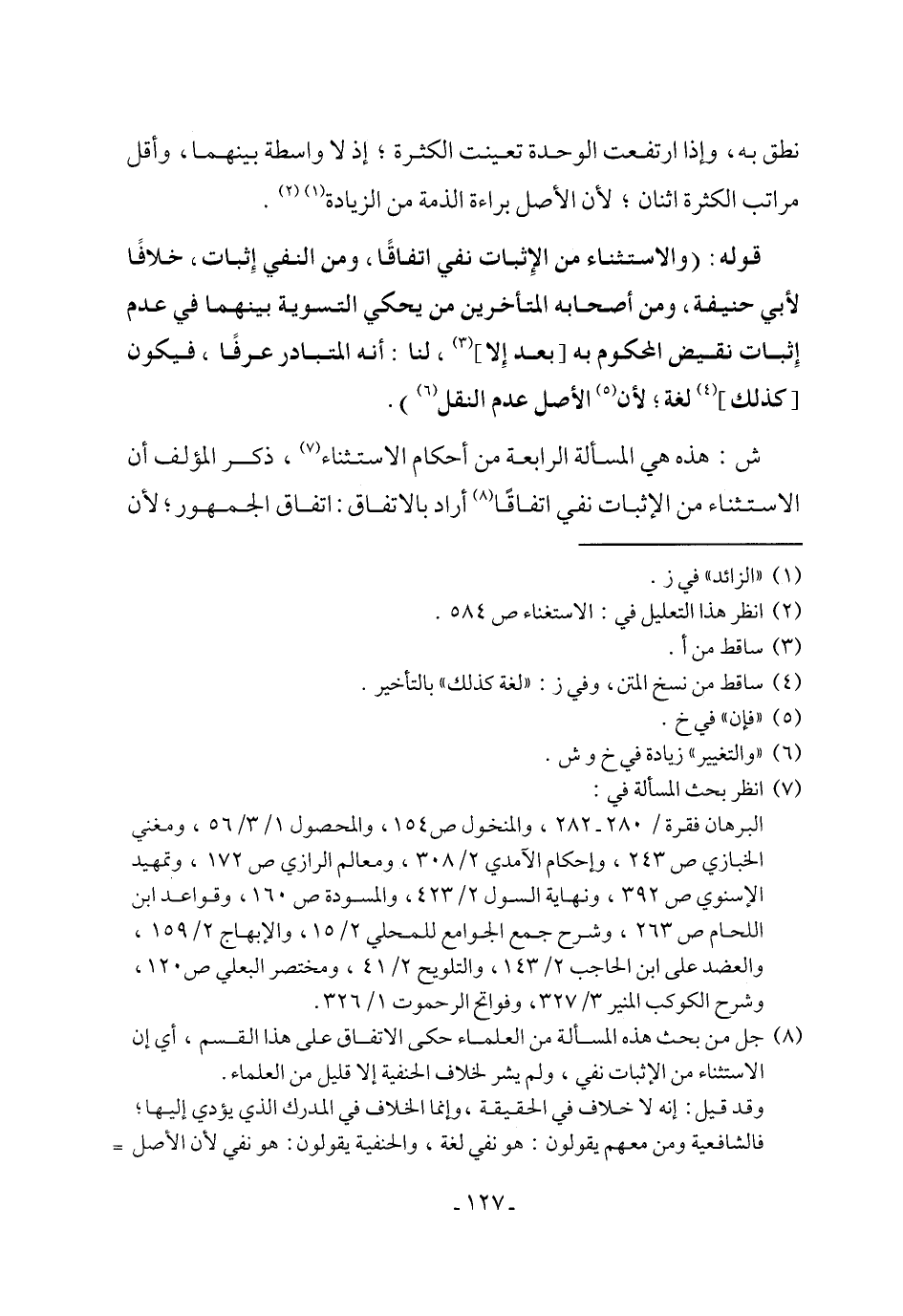 (¬8) جل من بحث هذه المسألة من العلماء حكى الاتفاق على هذا القسم، أي إن الاستثناء من الإثبات نفي، ولم يشر لخلاف الحنفية إلا قليل من العلماء.