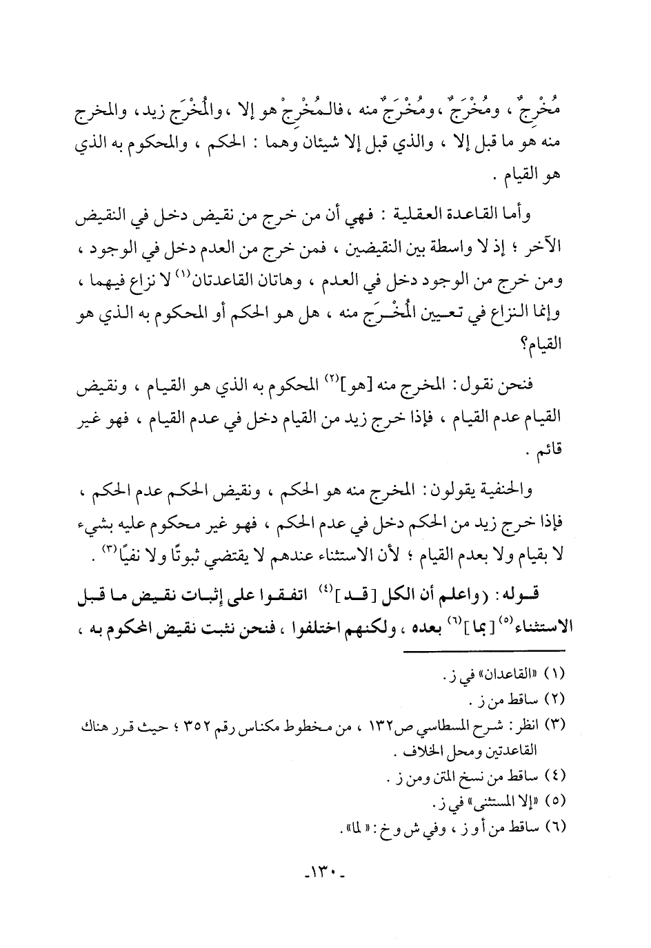 (¬3) انظر: شرح المسطاسي ص 132، من مخطوط مكناس رقم 352؛ حيث قرر هناك القاعدتين ومحل الخلاف.