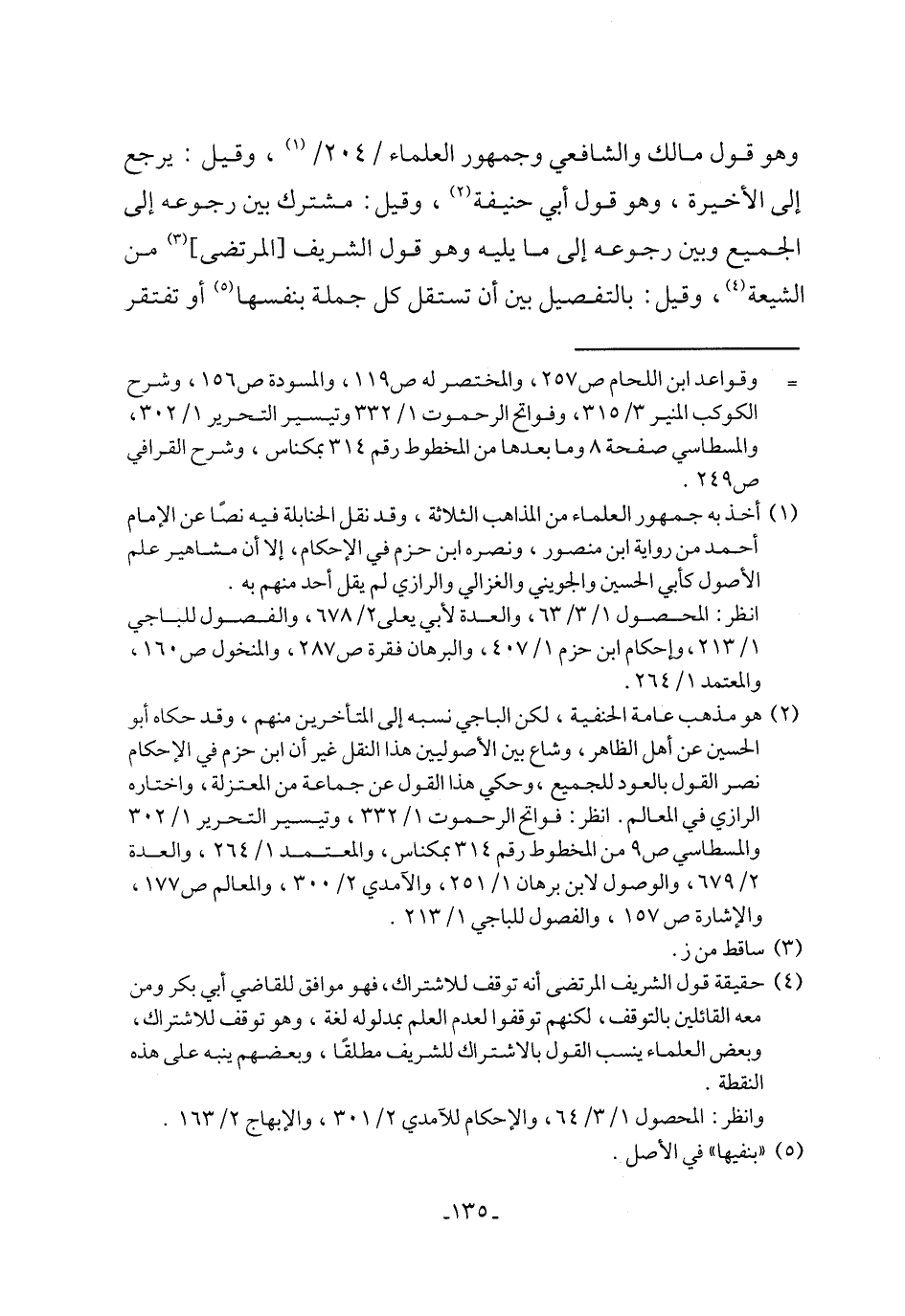 (¬4) حقيقة قول الشريف المرتضى أنه توقف للاشتراك، فهو موافق للقاضي أبي بكر ومن معه القائلين بالتوقف، لكنهم توقفوا لعدم العلم بمدلوله لغة، وهو توقف للاشتراك، وبعض العلماء ينسب القول بالاشتراك للشريف مطلقًا، وبعضهم ينبه على هذه النقطة.