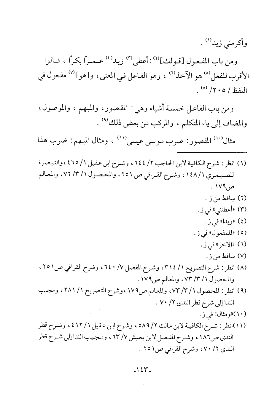 (¬11) انظر: شرح الكافية لابن مالك 2/ 589، وشرح ابن عقيل 1/ 412، وشرح قطر الندى ص 186، وشرح المفصل لابن يعيش 7/ 63، ومجيب الندا إلى شرح قطر الندى 2/ 70، وشرح القرافي ص 251.