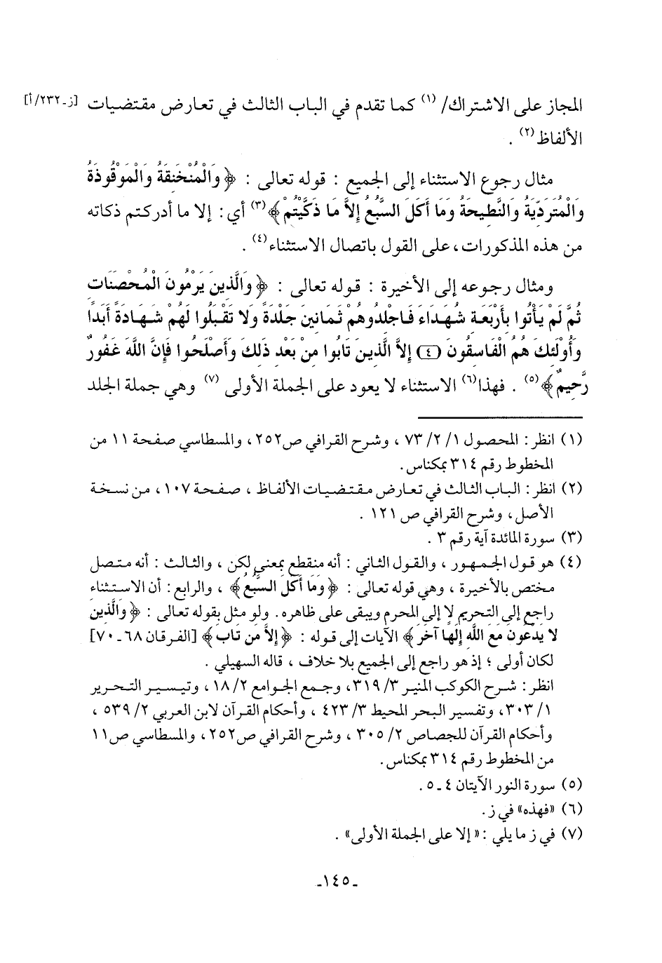 (¬2) انظر: الباب الثالث في تعارض مقتضيات الألفاظ، صفحة 107، من نسخة الأصل، وشرح القرافي ص 121.