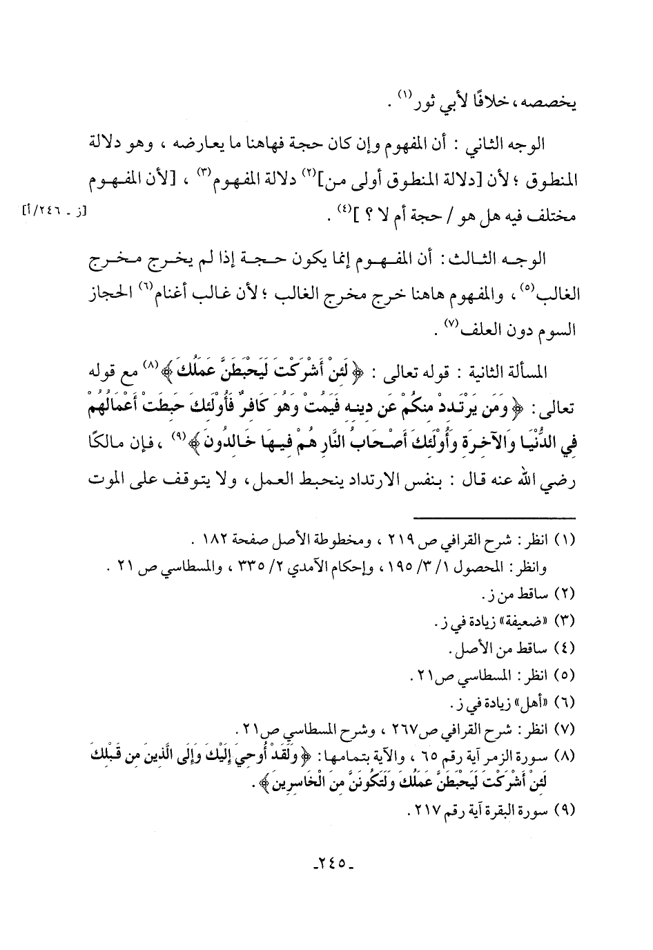 (¬1) انظر: شرح القرافي ص 219، ومخطوطة الأصل صفحة 182.