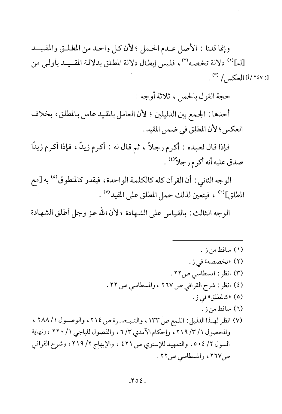 (¬7) انظر لهذا الدليل: اللمع ص 133، والتبصرة ص 214، والوصول 1/ 288، والمحصول 1/ 3/ 219، وإحكام الآمدي 3/ 6، والفصول للباجي 1/ 220، ونهاية السول 2/ 504، والتمهيد للإسنوي ص 421، والإبهاج 2/ 219، وشرح القرافي ص 267، والمسطاسي ص 22.