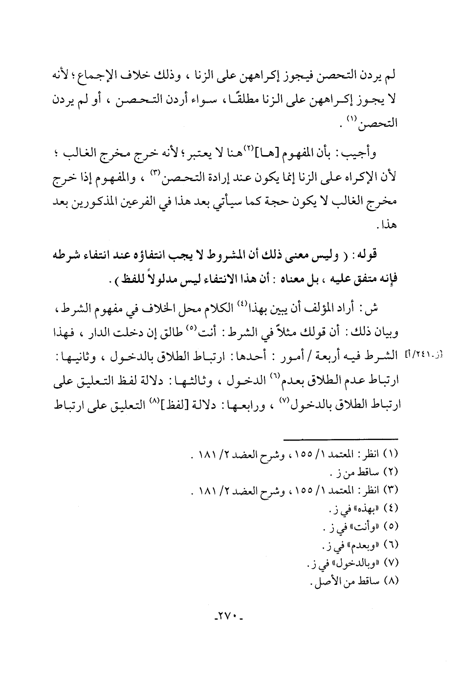 ش: أراد المؤلف أن يبين بهذا (¬4) الكلام محل الخلاف في مفهوم الشرط، وبيان ذلك: أن قولك مثلاً في الشرط: أنت (¬5) طالق إن دخلت الدار، فهذا الشرط فيه أربعة أمور: أحدها: ارتباط الطلاق بالدخول، وثانيها: ارتباط عدم الطلاق بعدم (¬6) الدخول، وثالثها: دلالة لفظ التعليق على ارتباط الطلاق بالدخول (¬7)، ورابعها: دلالة [لفظ] (¬8) التعليق على ارتباط