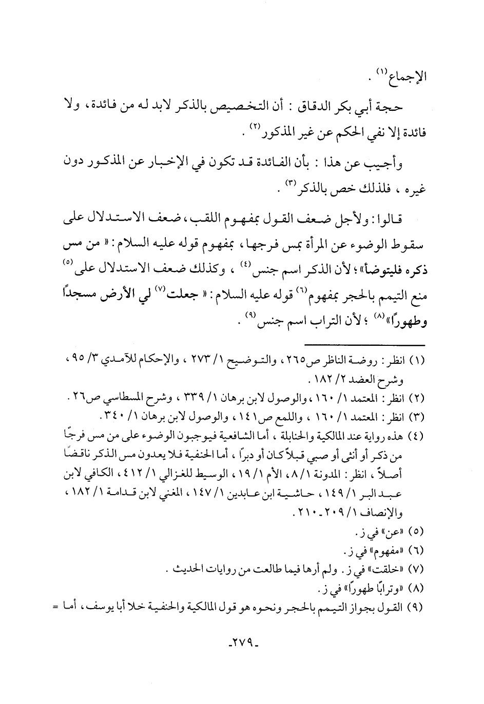 (¬1) انظر: روضة الناظر ص 265، والتوضيح 1/ 273، والإحكام للآمدي 3/ 95، وشرح العضد 2/ 182.