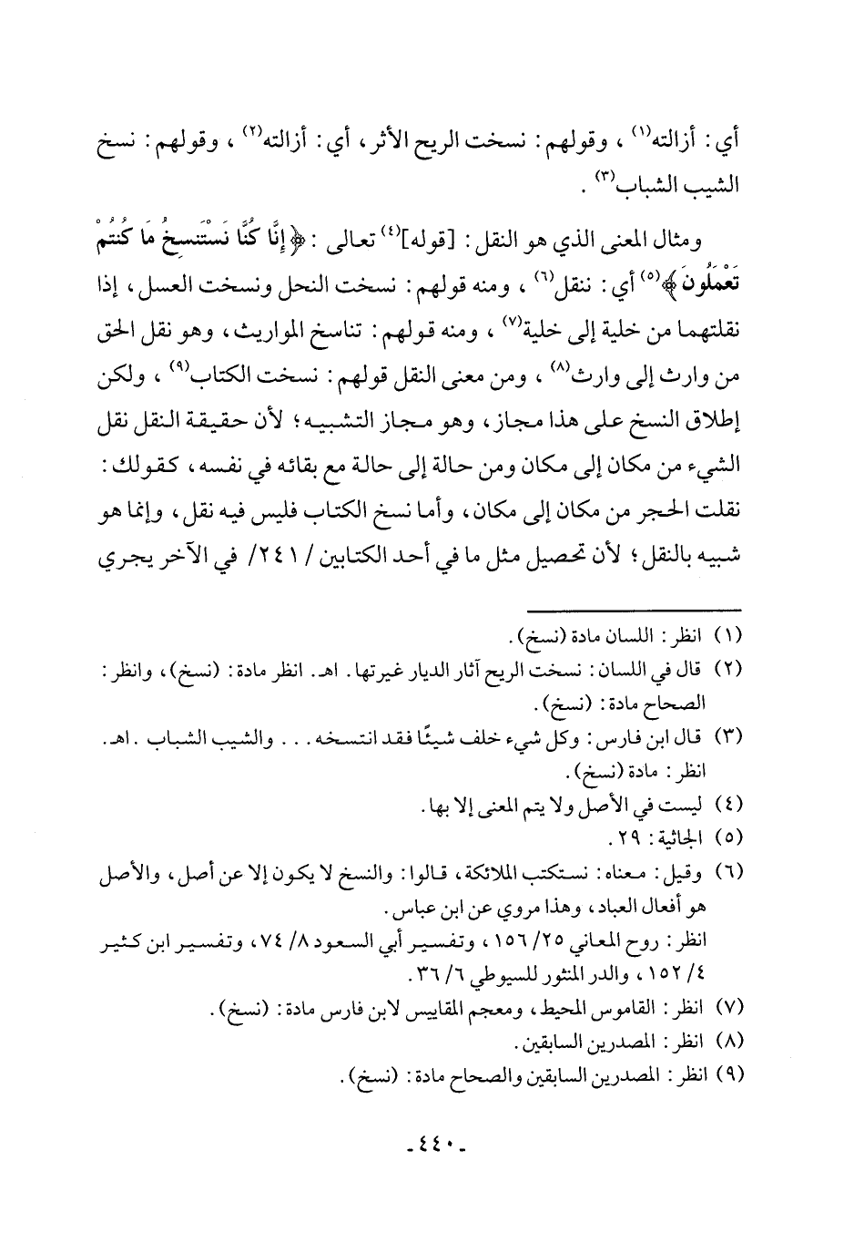 (¬7) انظر: القاموس المحيط، ومعجم المقاييس لابن فارس مادة: (نسخ).