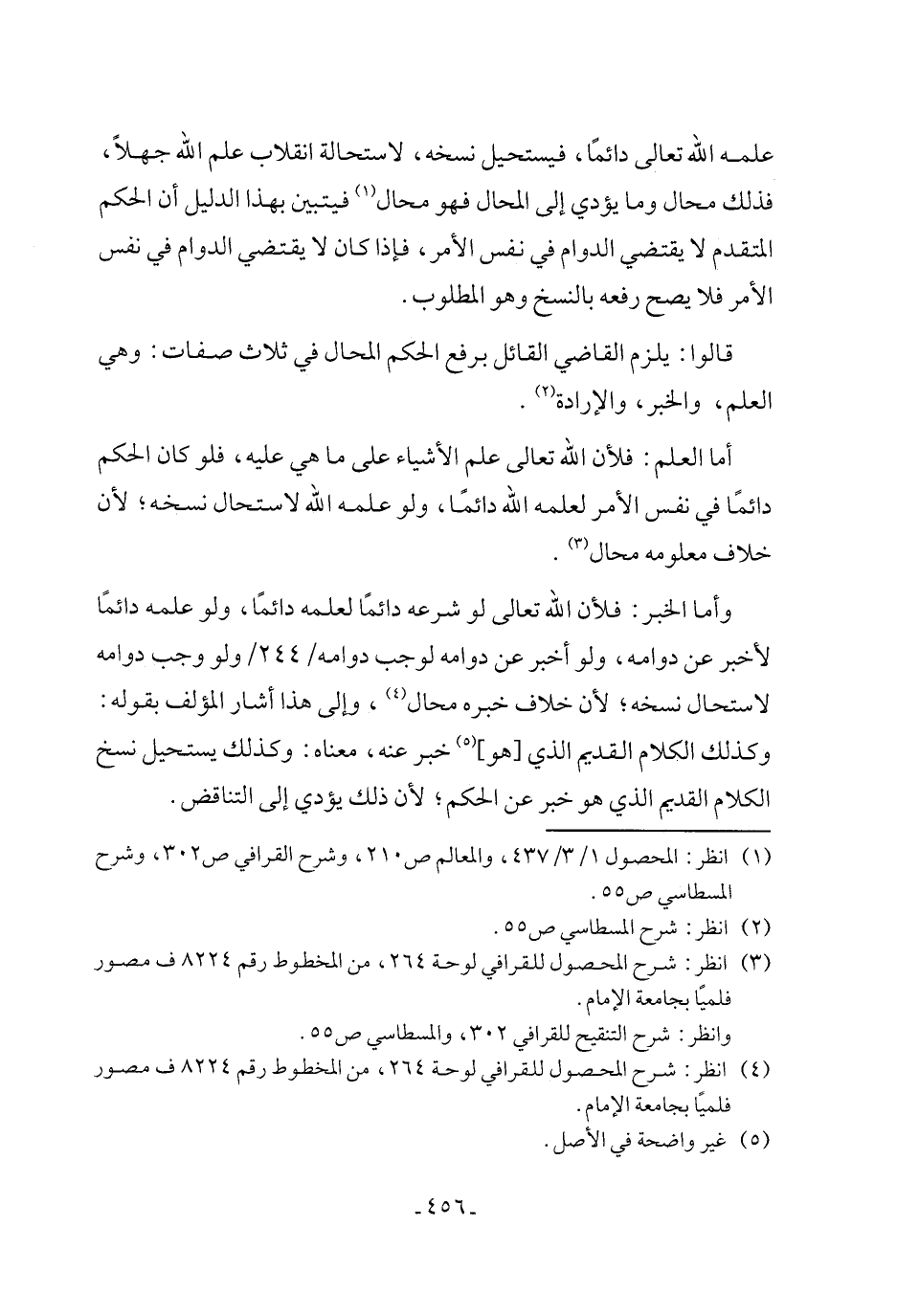 (¬4) انظر: شرح المحصول للقرافي لوحة 264، من المخطوط رقم 8224 ف مصور فلميًا بجامعة الإمام.