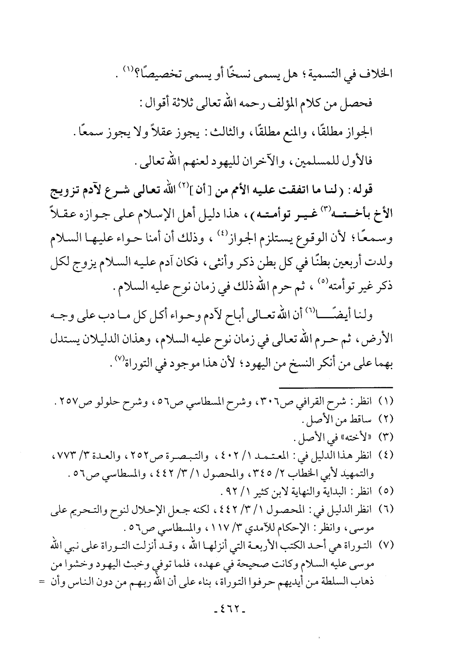 (¬6) انظر الدليل في: المحصول 1/ 3/ 442، لكنه جعل الإحلال لنوح والتحريم على موسى، وانظر: الإحكام للآمدي 3/ 117، والمسطاسي ص 56.