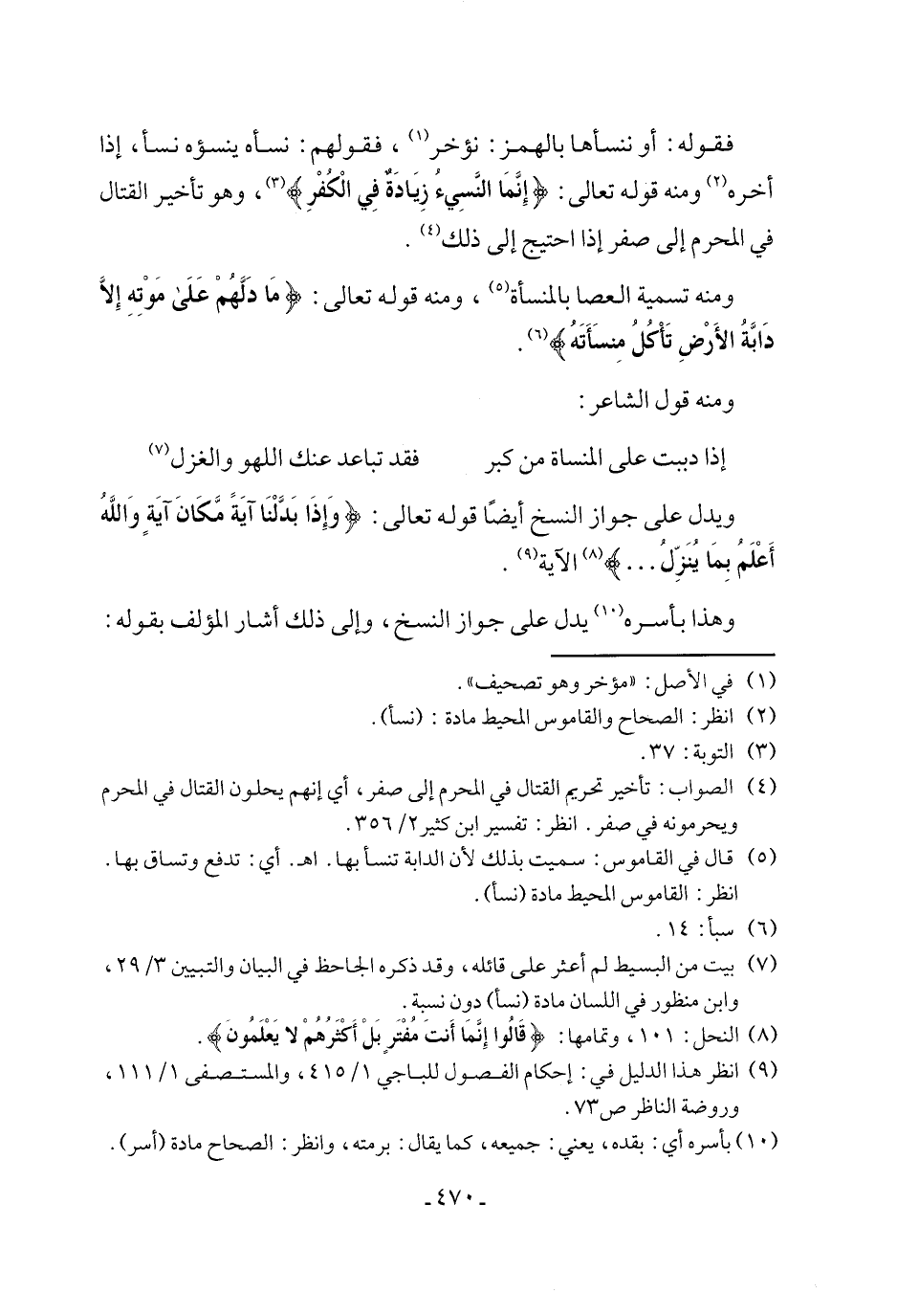 (¬2) انظر: الصحاح والقاموس المحيط مادة: (نسأ).