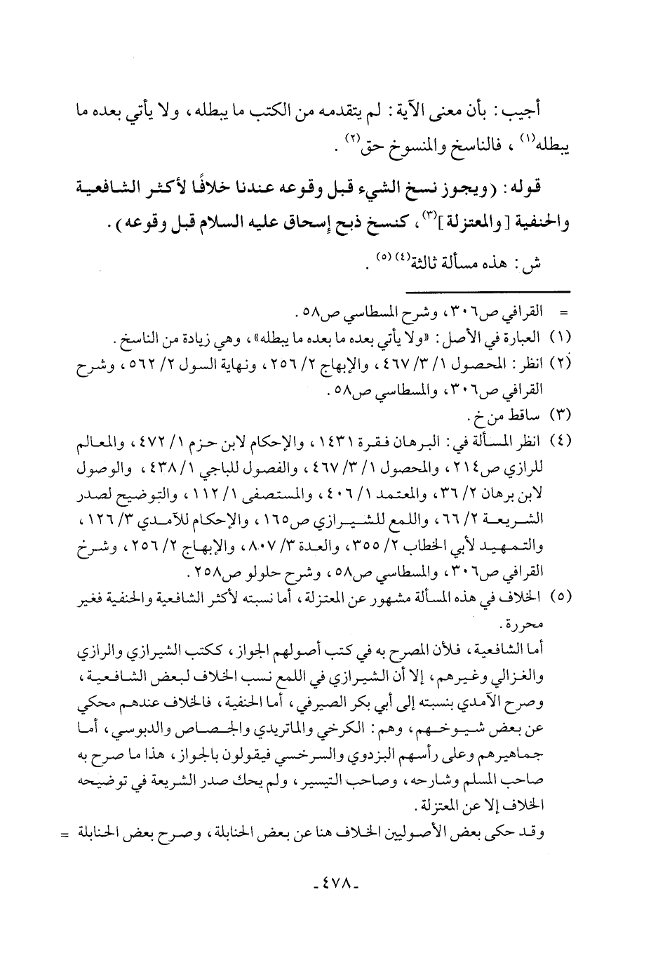 (¬5) الخلاف في هذه المسألة مشهور عن المعتزلة، أما نسبته لأكثر الشافعية والحنفية فغير محررة.