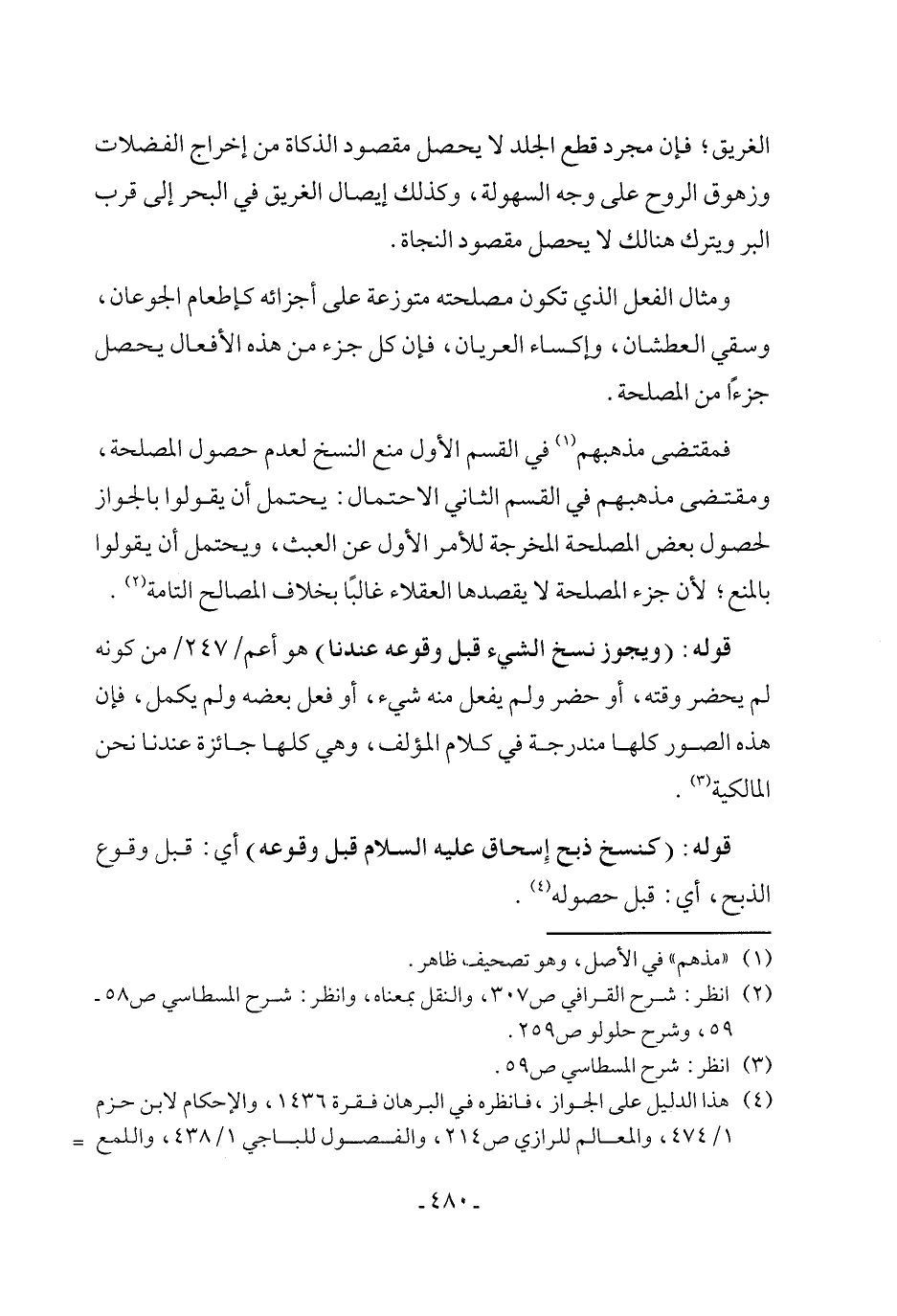 (¬2) انظر: شرح القرافي ص 307، والنقل بمعناه، وانظر: شرح المسطاسي ص 58 - 59، وشرح حلولو ص 259.