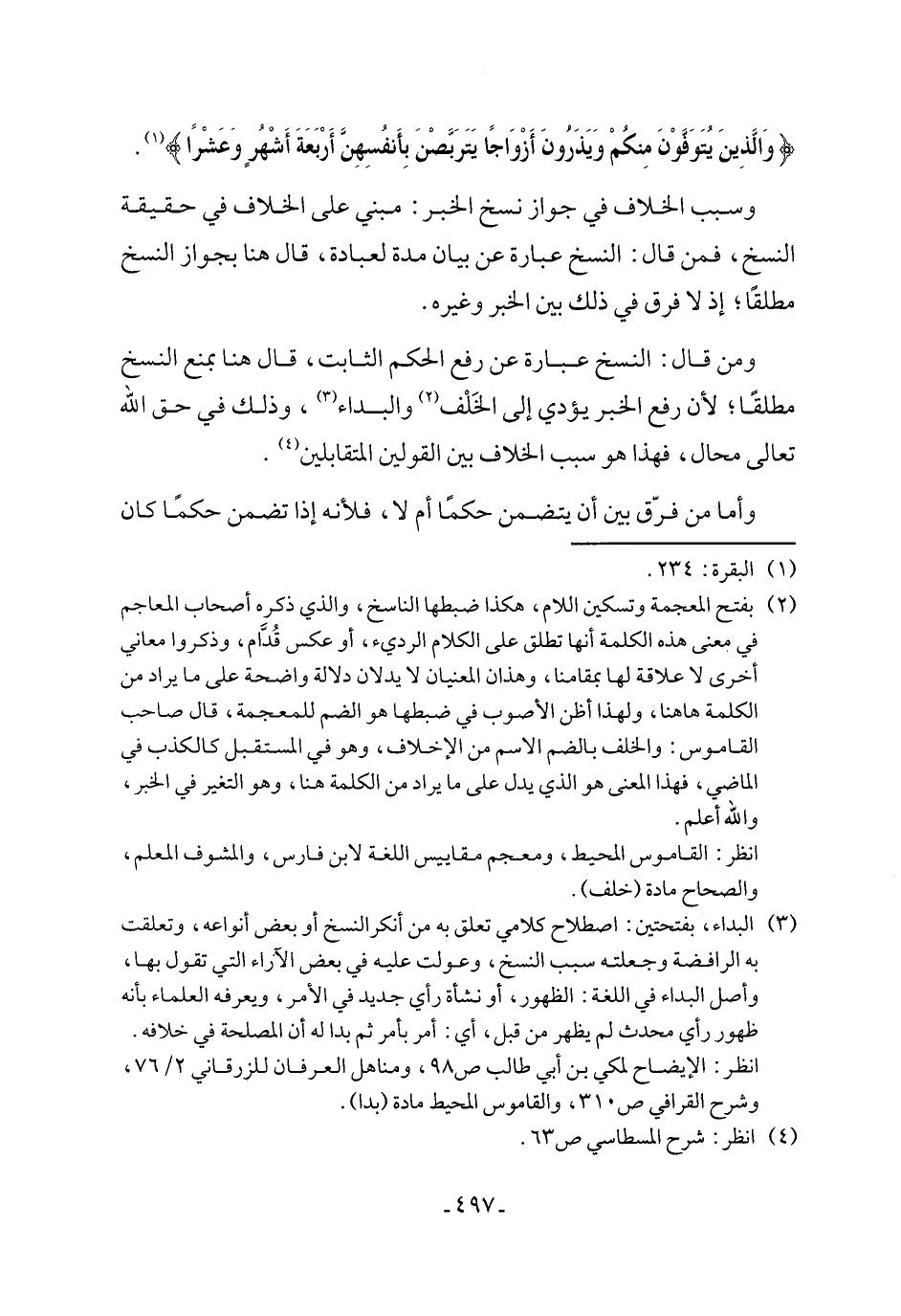 انظر: الإيضاح لمكي بن أبي طالب ص 98، ومناهل العرفان للزرقاني 2/ 76، وشرح القرافي ص 310، والقاموس المحيط مادة (بدا).