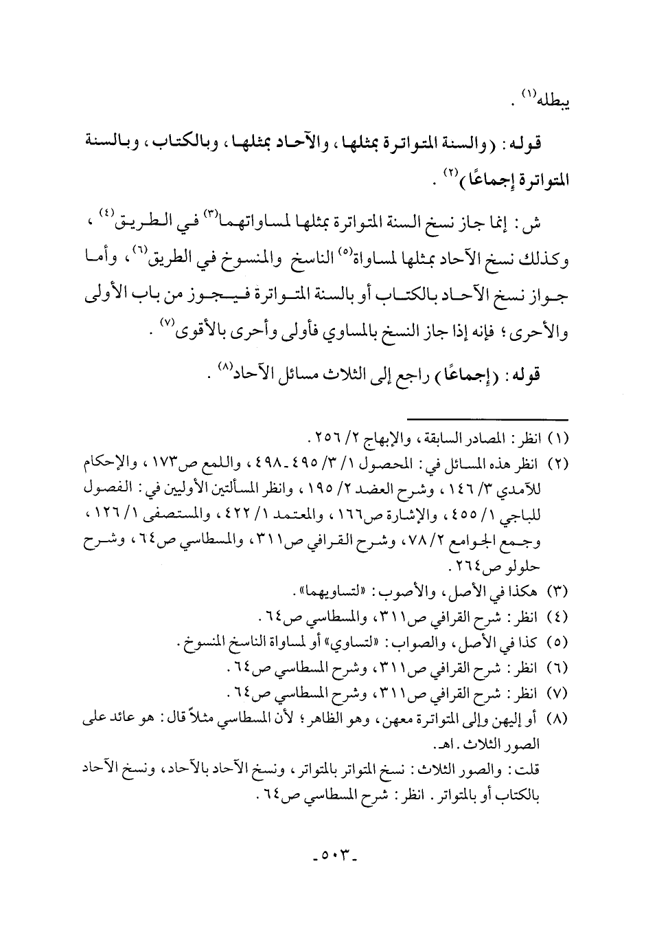 (¬7) انظر: شرح القرافي ص 311، وشرح المسطاسي ص 64.