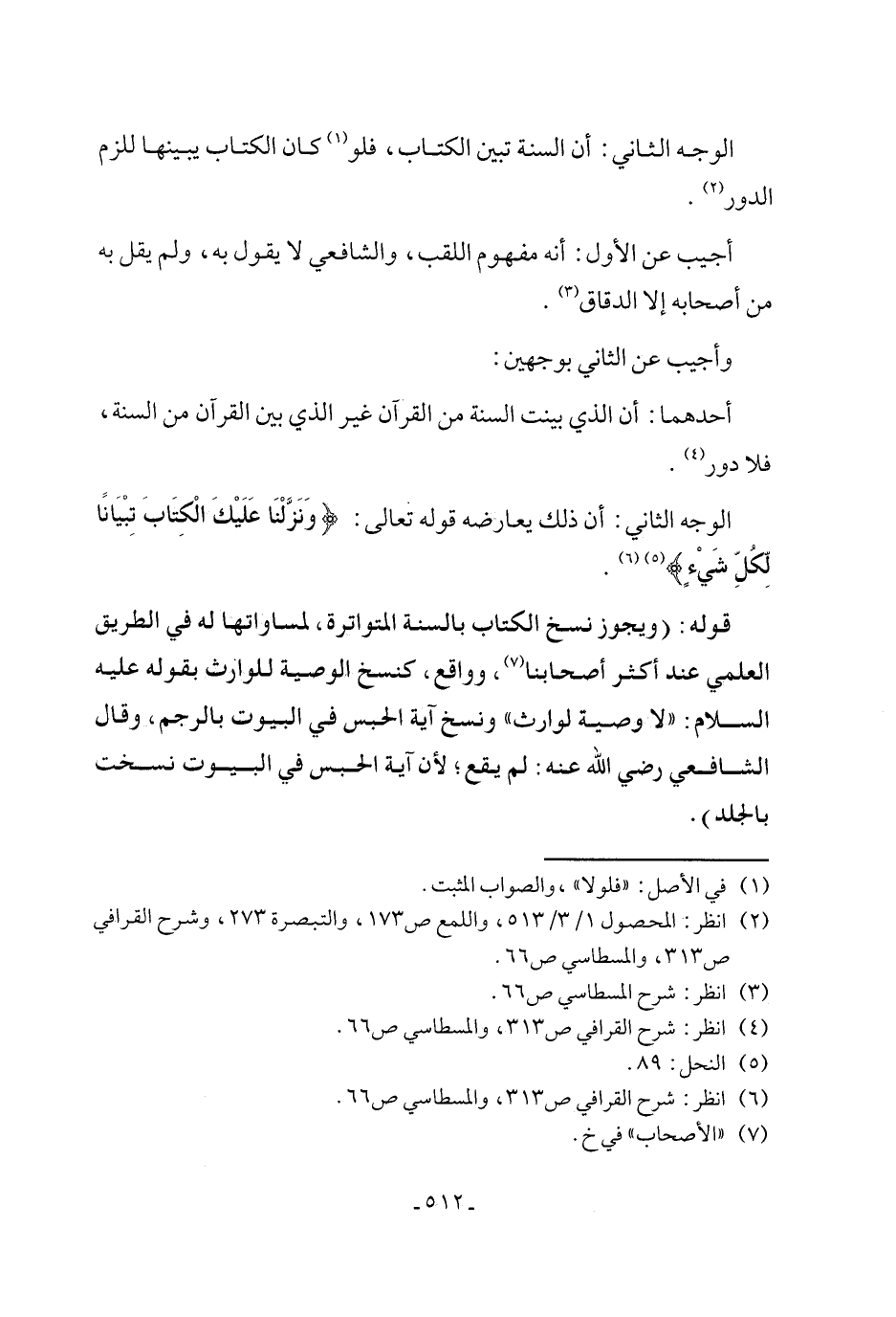 (¬2) انظر: المحصول 1/ 3/ 513، واللمع ص 173، والتبصرة 273، وشرح القرافي ص 313، والمسطاسي ص 66.