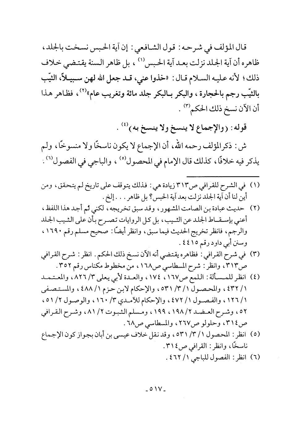 (¬1) في الشرح للقرافي ص 313 زيادة هي: فذلك يتوقف على تاريخ لم يتحقق، ومن أين لنا أن آية الجلد نزلت بعد آية الحبس؟ بل ظاهر ... إلخ.