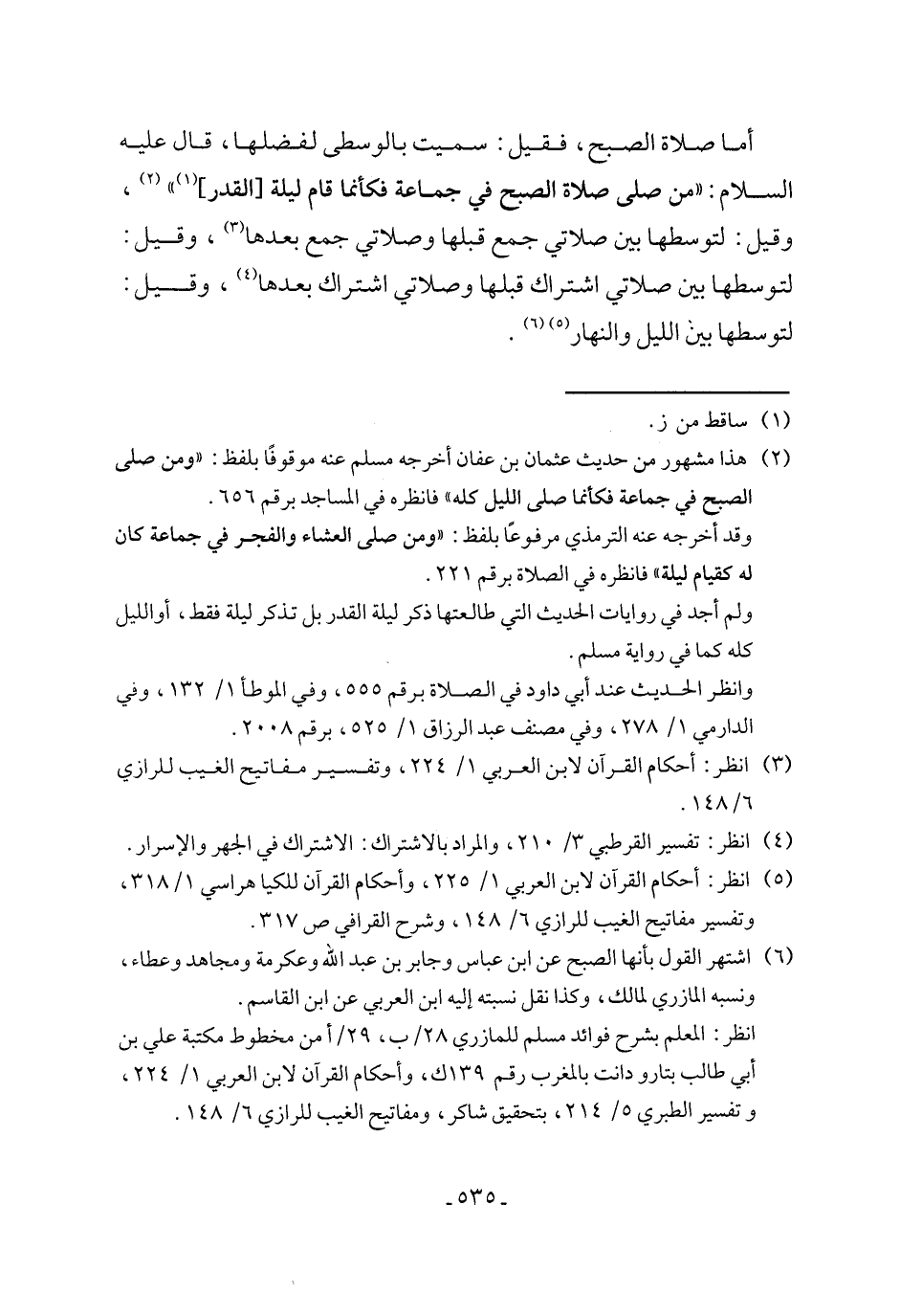 (¬6) اشتهر القول بأنها الصبح عن ابن عباس وجابر بن عبد الله وعكرمة ومجاهد وعطاء، ونسبه المازري لمالك، وكذا نقل نسبته إليه ابن العربي عن ابن القاسم.