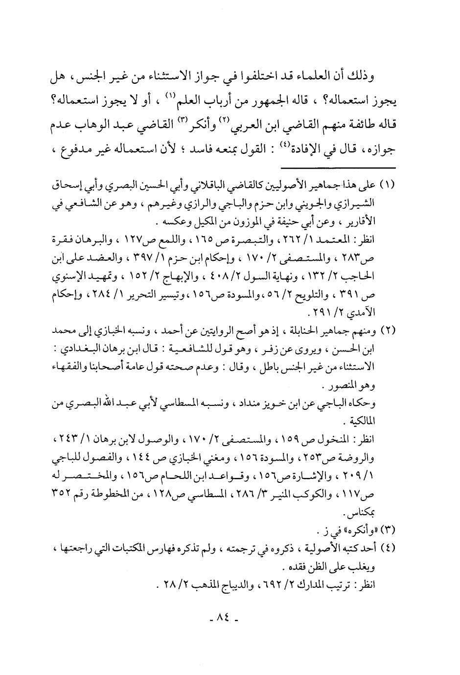 (¬1) على هذا جماهير الأصوليين كالقاضي الباقلاني وأبي الحسين البصري وأبي إسحاق الشيرازي والجويني وابن حزم والباجي والرازي وغيرهم، وهو عن الشافعي في الأقارير، وعن أبي حنيفة في الموزون من المكيل وعكسه.