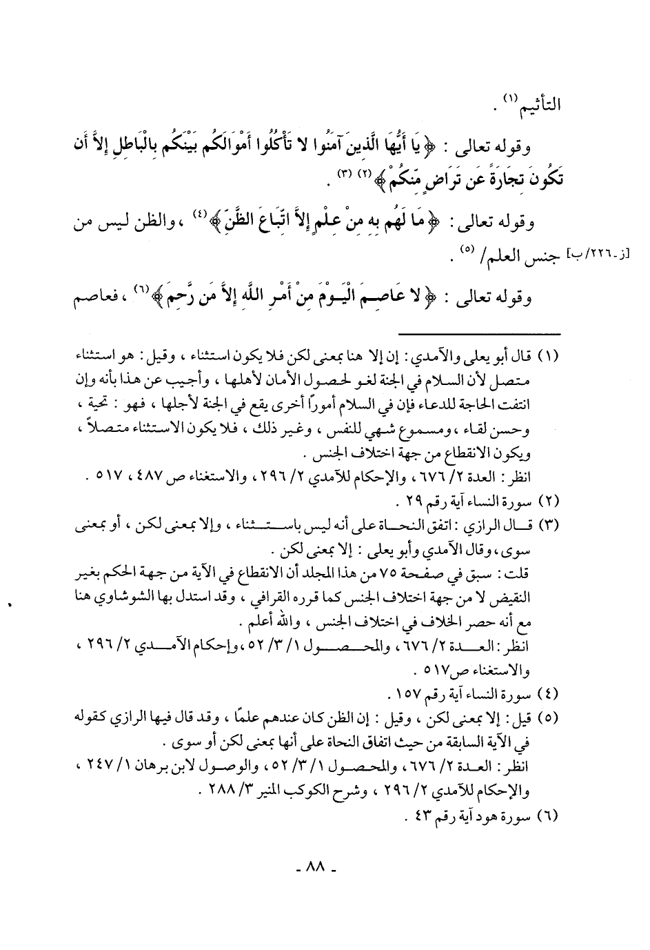 (¬5) قيل: إلا بمعنى لكن، وقيل: إن الظن كان عندهم علمًا، وقد قال فيها الرازي كقوله في الآية السابقة من حيث اتفاق النحاة على أنها بمعنى لكن أو سوى.