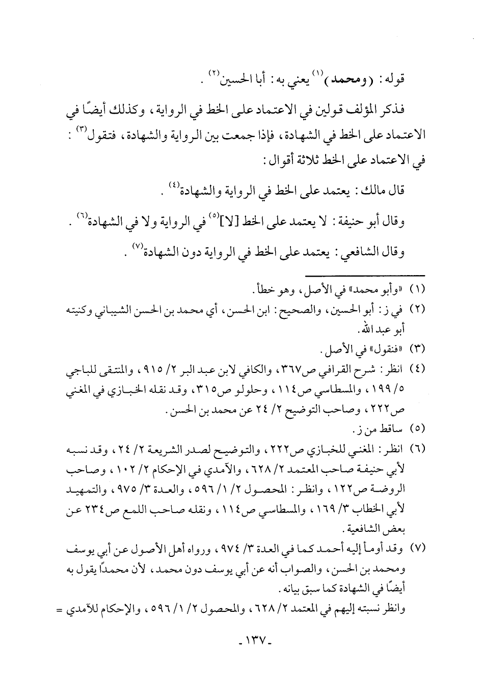 (¬4) انظر: شرح القرافي ص 367، والكافي لابن عبد البر 2/ 915، والمنتقى للباجي 5/ 199، والمسطاسي ص 114، وحلولو ص 315، وقد نقله الخبازي في المغني ص 222، وصاحب التوضيح 2/ 24 عن محمد بن الحسن.