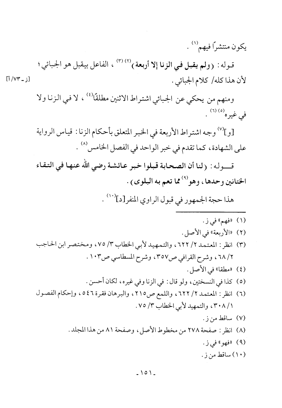 (¬6) انظر: المعتمد 2/ 622، واللمع ص 215، والبرهان فقرة 546، وإحكام الفصول 1/ 308، والتمهيد لأبي الخطاب 3/ 75.