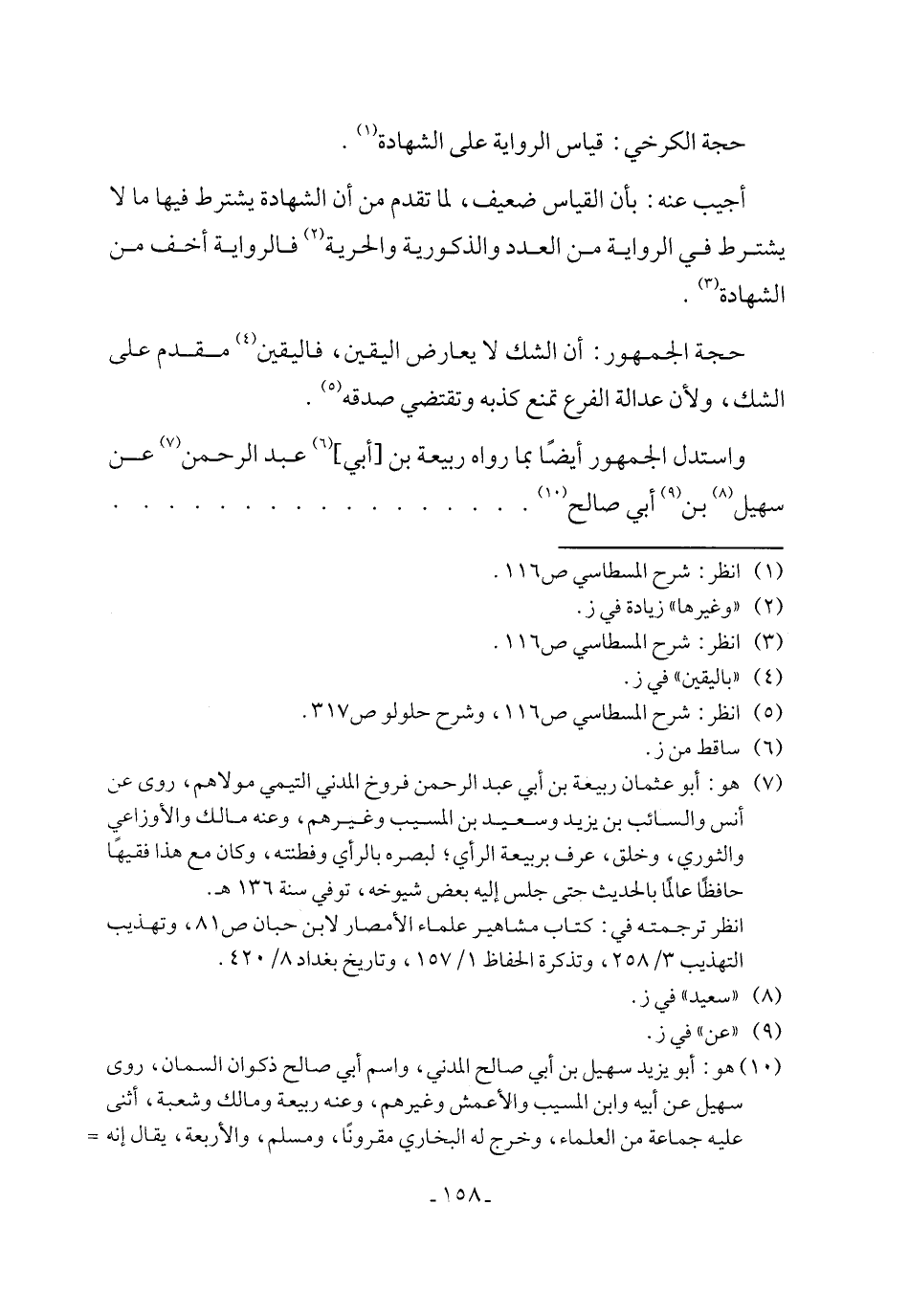 (¬7) هو: أبو عثمان ربيعة بن أبي عبد الرحمن فروخ المدني التيمي مولاهم، روى عن أنس والسائب بن يزيد وسعيد بن المسيب وغيرهم، وعنه مالك والأوزاعي والثوري، وخلق، عرف بربيعة الرأي؛ لبصره بالرأي وفطنته، وكان مع هذا فقيهًا حافظًا عالمًا بالحديث حتى جلس إليه بعض شيوخه، توفي سنة 136 هـ.