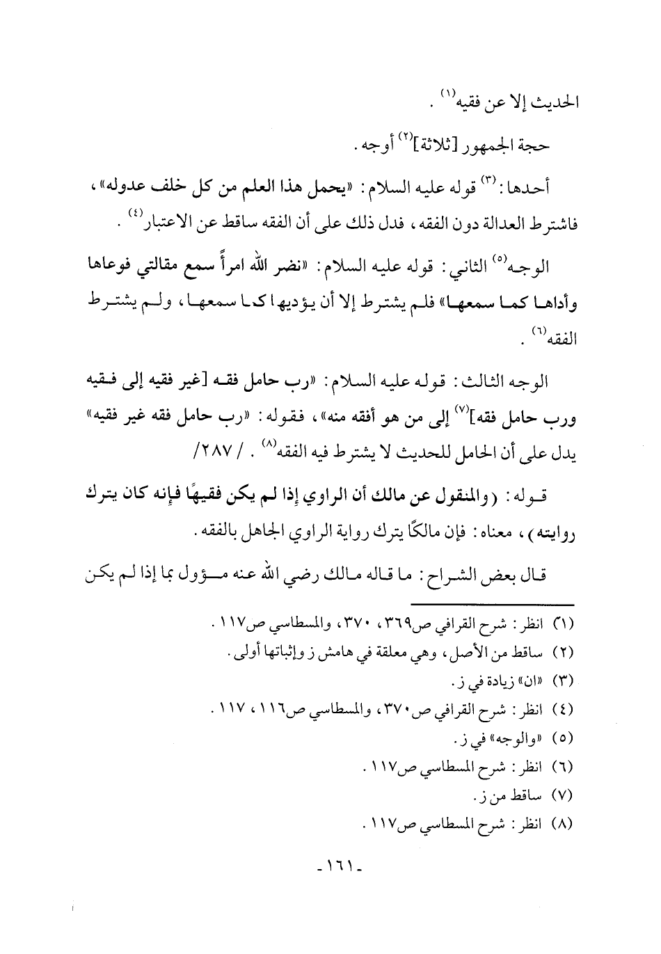 الوجه الثالث: قوله عليه السلام: "رب حامل فقه [غير فقيه إلى فقيه ورب حامل فقه] (¬7) إلى من هو أفقه منه"، فقوله: "رب حامل فقه غير فقيه" يدل على أن الحامل للحديث لا يشترط فيه الفقه (¬8)./ 287/