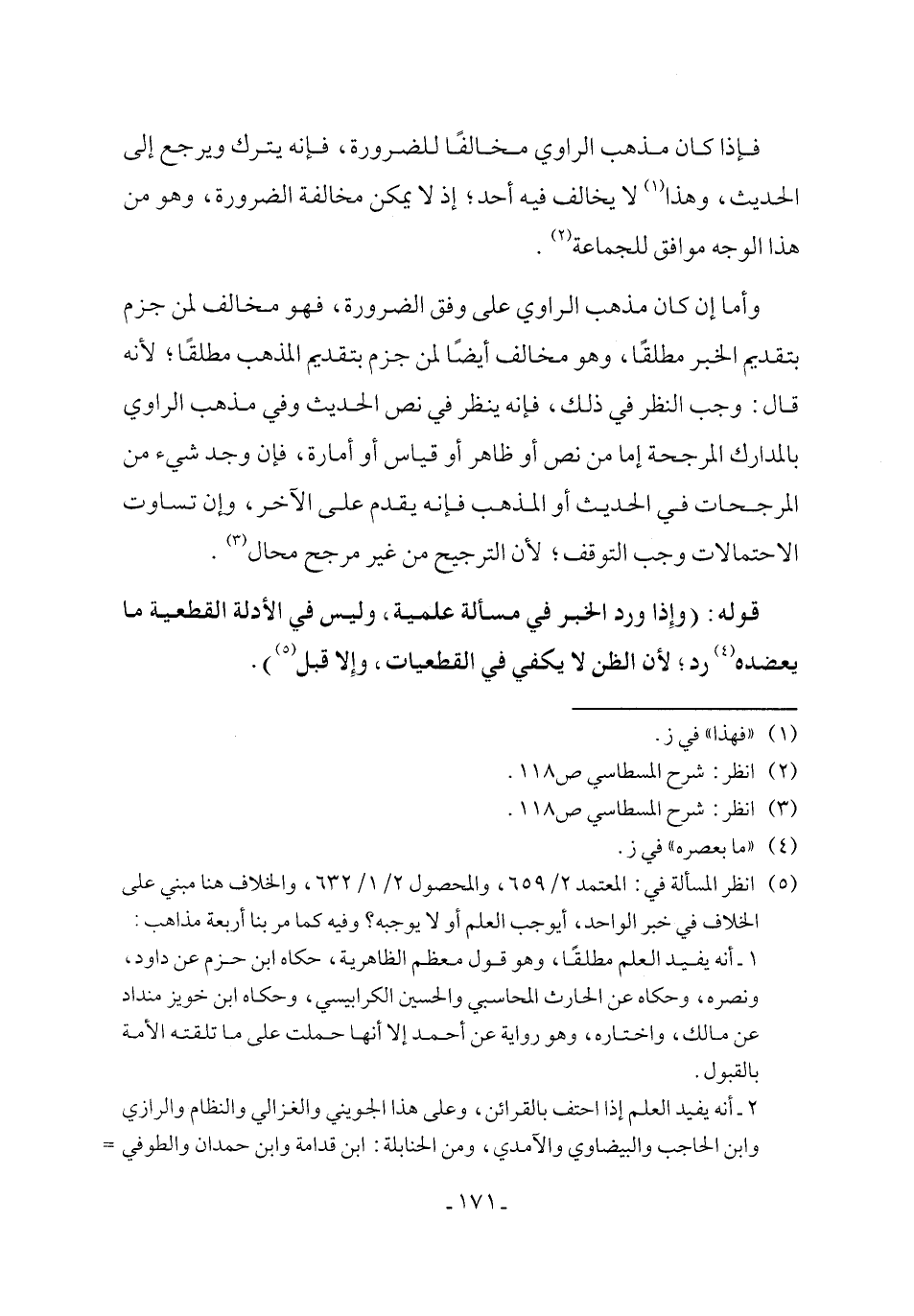 (¬5) انظر المسألة في: المعتمد 2/ 659، والمحصول 2/ 1/ 632، والخلاف هنا مبني على الخلاف في خبر الواحد، أيوجب العلم أو لا يوجبه؟ وفيه كما مر بنا أربعة مذاهب: