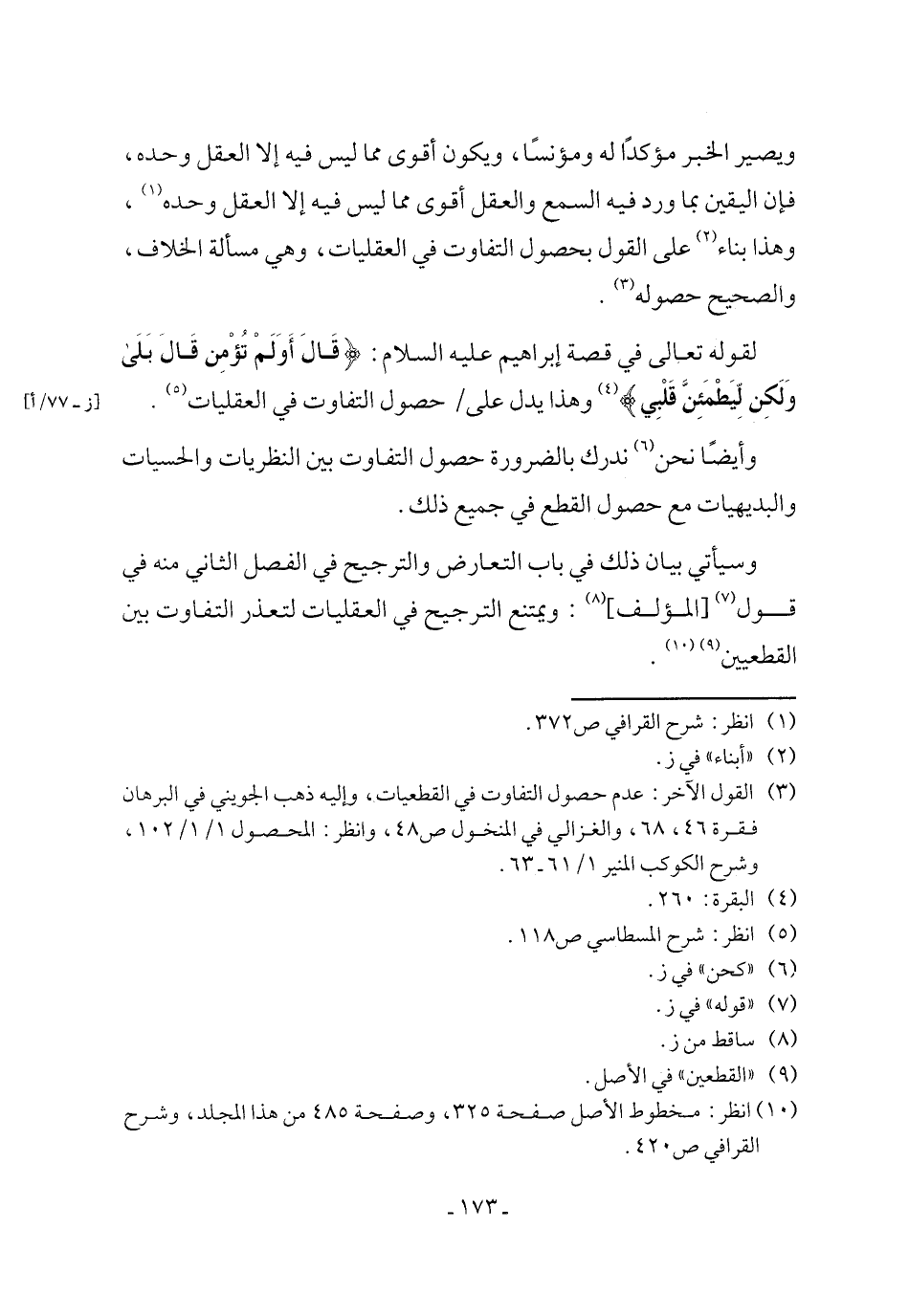 (¬10) انظر: مخطوط الأصل صفحة 325، وصفحة 485 من هذا المجلد، وشرح القرافي ص 420.