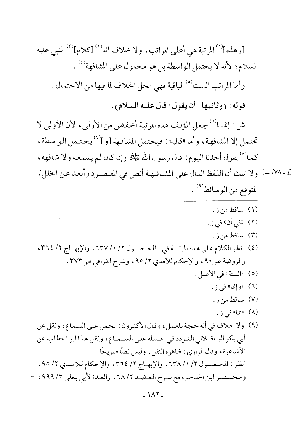 (¬4) انظر الكلام على هذه المرتبة في: المحصول 2/ 1/ 637، والإبهاج 2/ 364، والروضة ص 90، والإحكام للآمدي 2/ 95، وشرح القرافي ص 373.