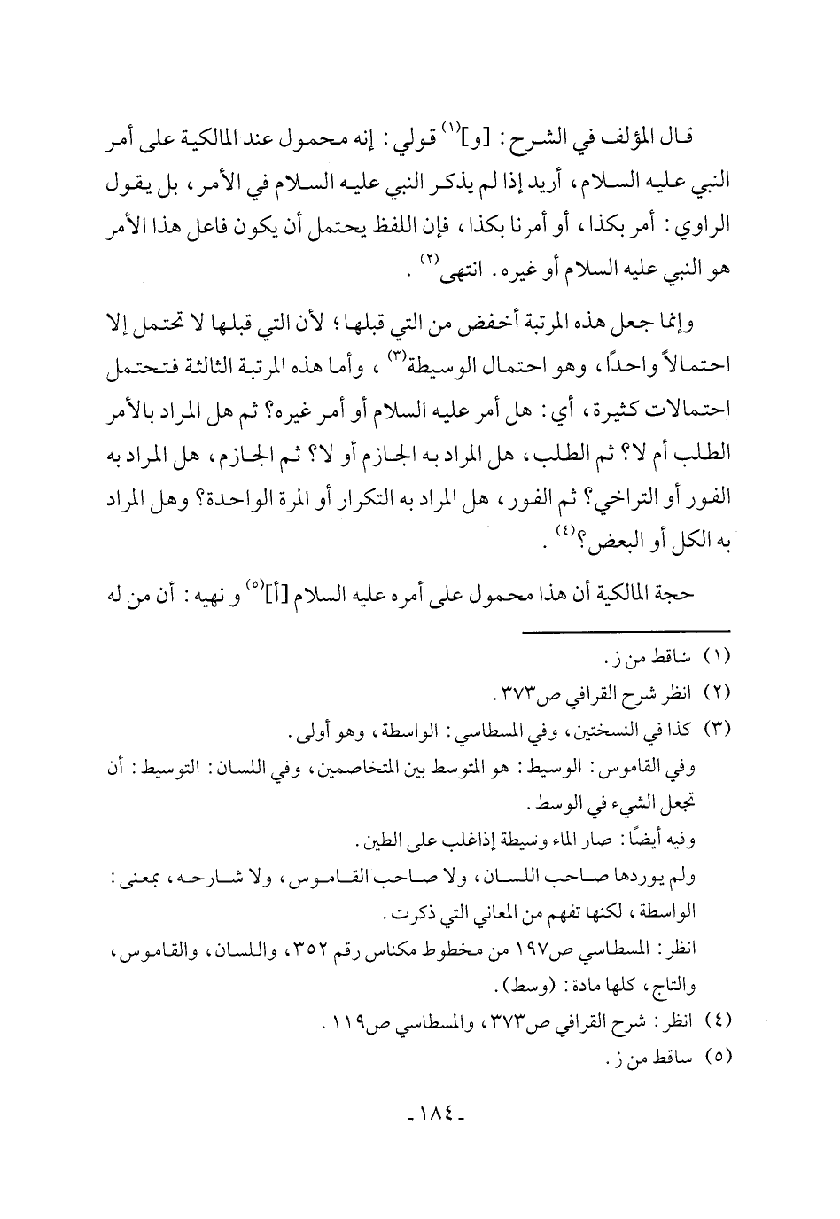 (¬4) انظر: شرح القرافي ص 373، والمسطاسي ص 119.