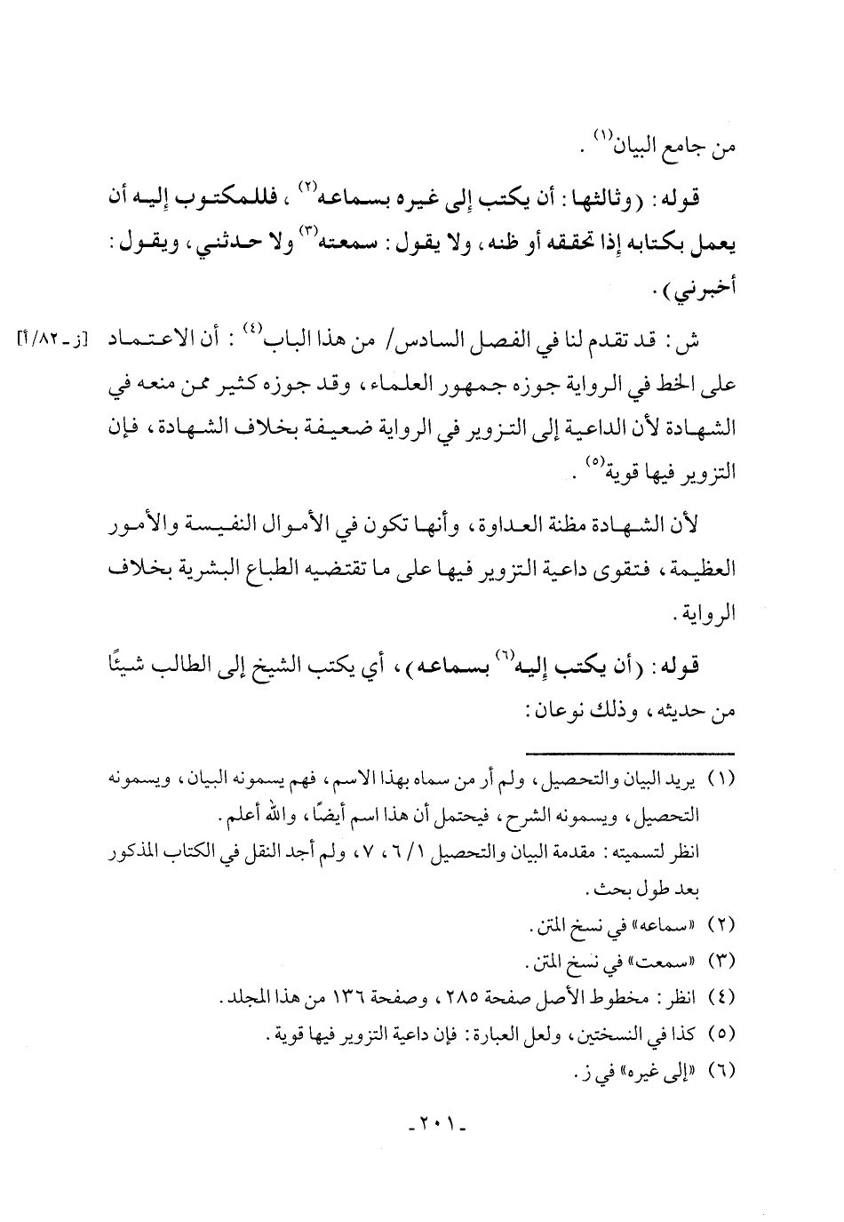 (¬1) يريد البيان والتحصيل، ولم أر من سماه بهذا الاسم، فهم يسمونه البيان، ويسمونه التحصيل، ويسمونه الشرح، فيحتمل أن هذا اسم أيضًا، والله أعلم.