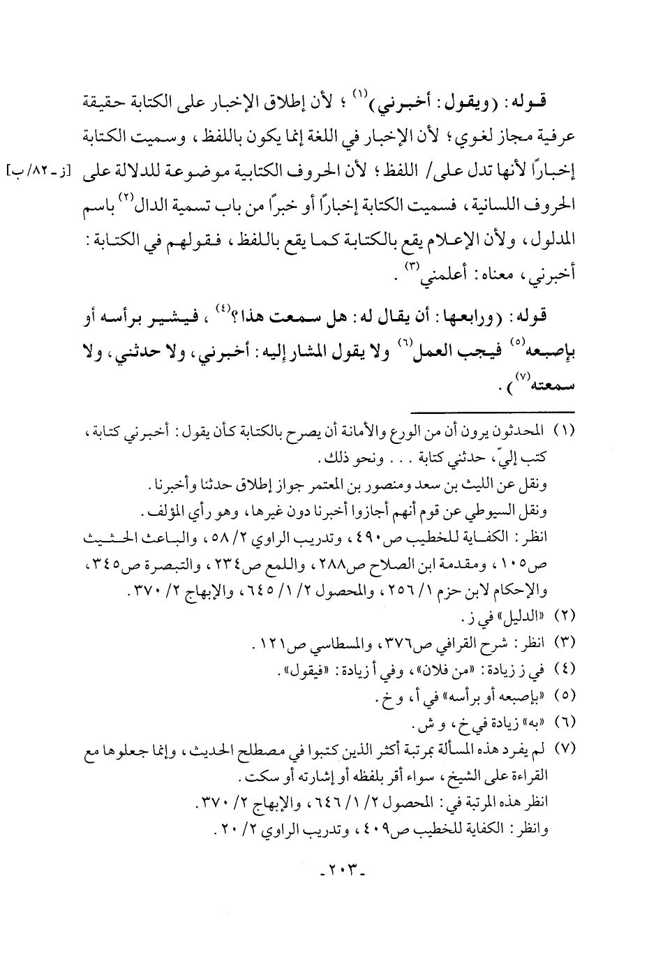 قوله: (ورابعها: أن يقال له: هل سمعت هذا؟ (¬4)، فيشير برأسه أو بإِصبعه (¬5) فيجب العمل (¬6) ولا يقول المشار إِليه: أخبرني، ولا حدثني، ولا سمعته (¬7)).