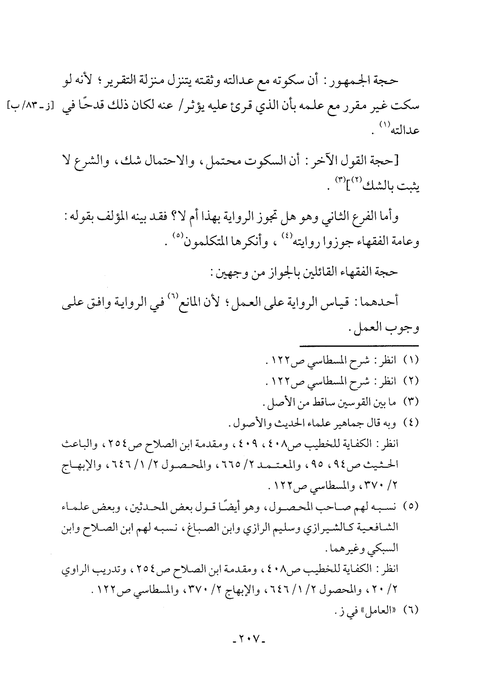 انظر: الكفاية للخطيب ص 408، ومقدمة ابن الصلاح ص 254، وتدريب الراوي 2/ 20، والمحصول 2/ 1/ 646، والإبهاج 2/ 370، والمسطاسي ص 122.