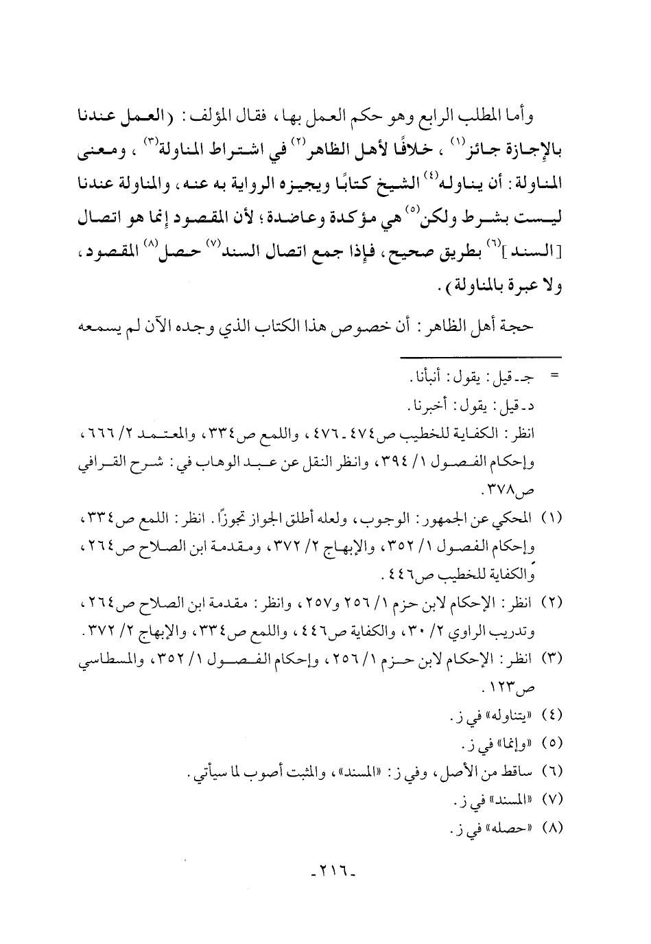 (¬2) انظر: الإحكام لابن حزم 1/ 256 و257، وانظر: مقدمة ابن الصلاح ص 264، وتدريب الراوي 2/ 30، والكفاية ص 446، واللمع ص 334، والإبهاج 2/ 372.