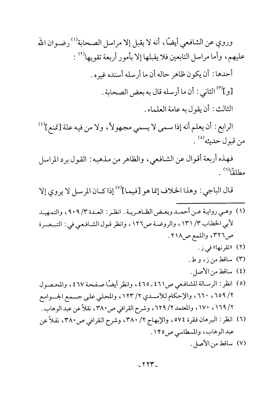 (¬6) انظر: البرهان فقرة 574، الإبهاج 2/ 380، وشرح القرافي ص 380، نقلًا عن عبد الوهاب، والمسطاسي ص 125.