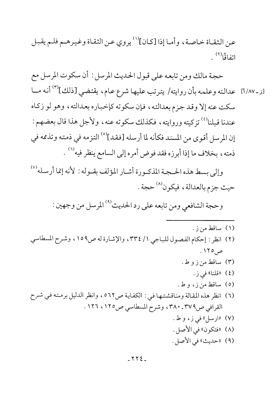(¬2) انظر: إحكام الفصول للباجي 1/ 334، والإشارة له ص 159، وشرح المسطاسي ص 125.