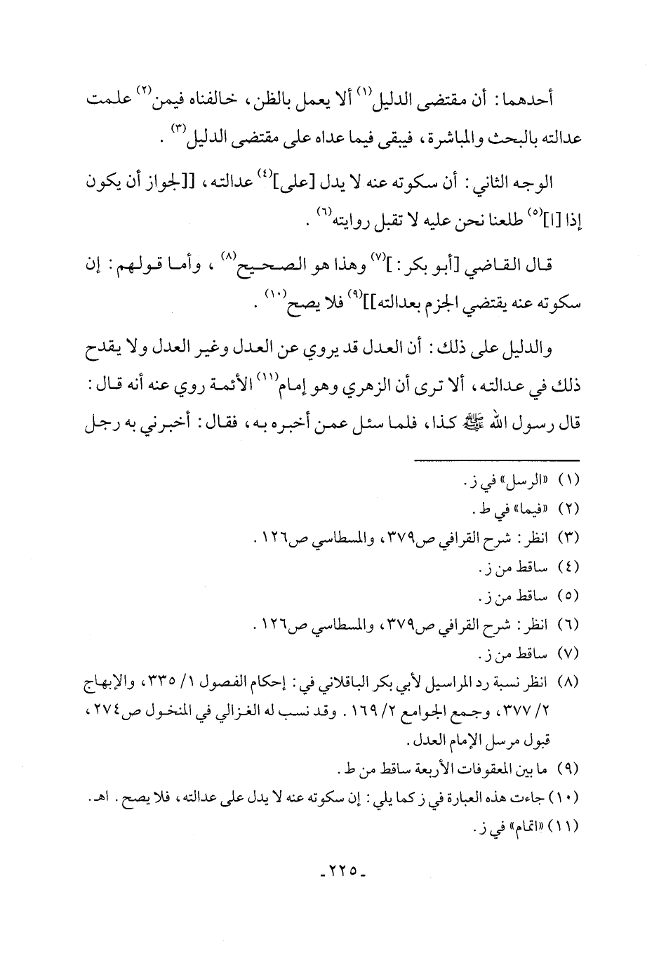 (¬8) انظر نسبة رد المراسيل لأبي بكر الباقلاني في: إحكام الفصول 1/ 335، والإبهاج 2/ 377، وجمع الجوامع 2/ 169. وقد نسب له الغزالي في المنخول ص 274، قبول مرسل الإمام العدل.