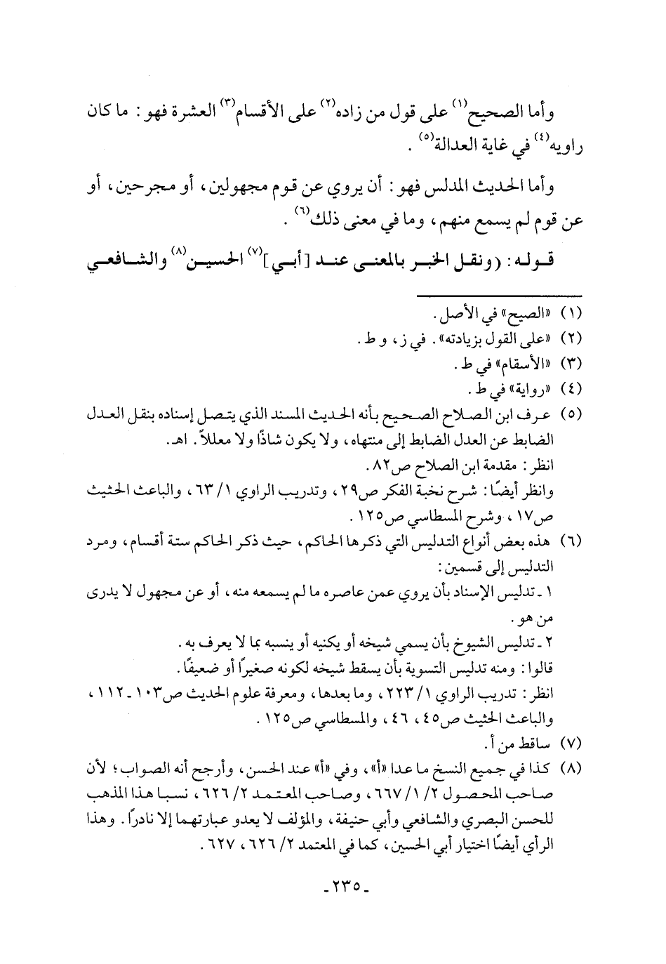 وانظر أيضًا: شرح نخبة الفكر ص 29، وتدريب الراوي 1/ 63، والباعث الحثيث ص 17، وشرح المسطاسي ص 125.