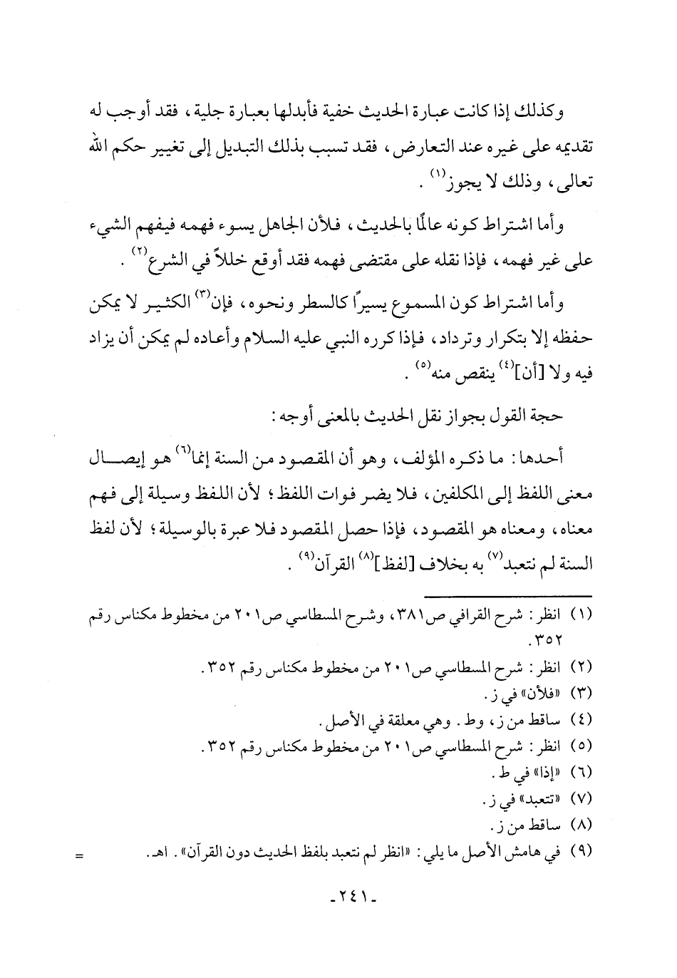(¬9) في هامش الأصل ما يلي: "انظر لم نتعبد بلفظ الحديث دون القرآن". اهـ. =