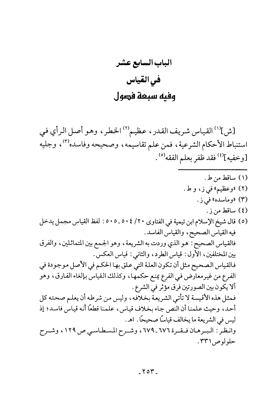(¬5) قال شيخ الإسلام ابن تيمية في الفتاوى 20/ 504 - 505: لفظ القياس مجمل يدخل فيه القياس الصحيح، والقياس الفاسد.