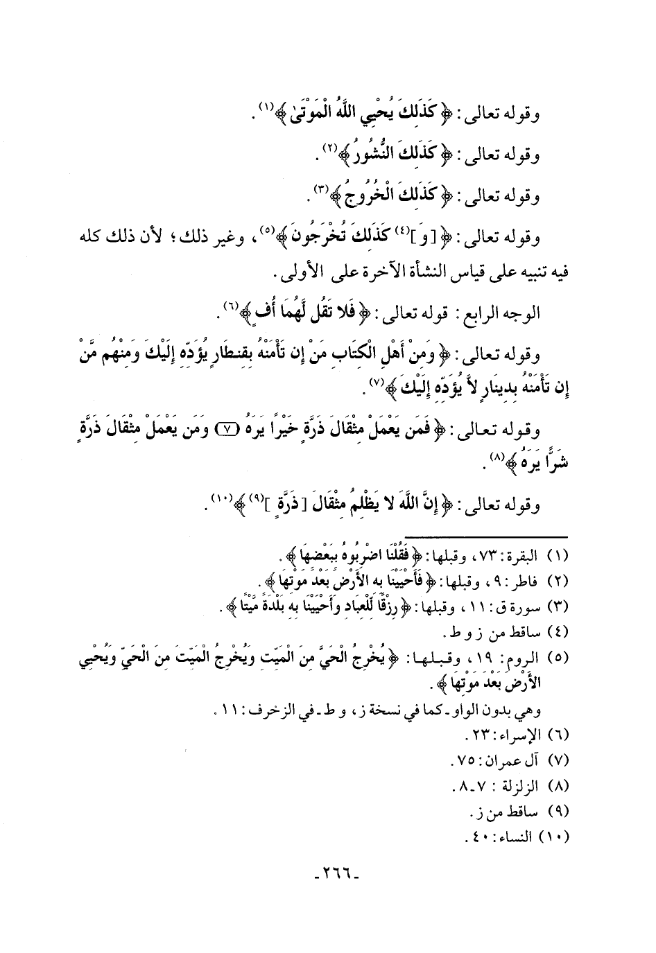 وقوله تعالى: {فَمَن يَعْمَلْ مِثْقَالَ ذَرَةٍ خَيْرًا يَرَهُ (7) وَمَن يَعْمَلْ مِتْقَالَ ذَرَّةٍ شَرًّا يَرَهُ} (¬8).