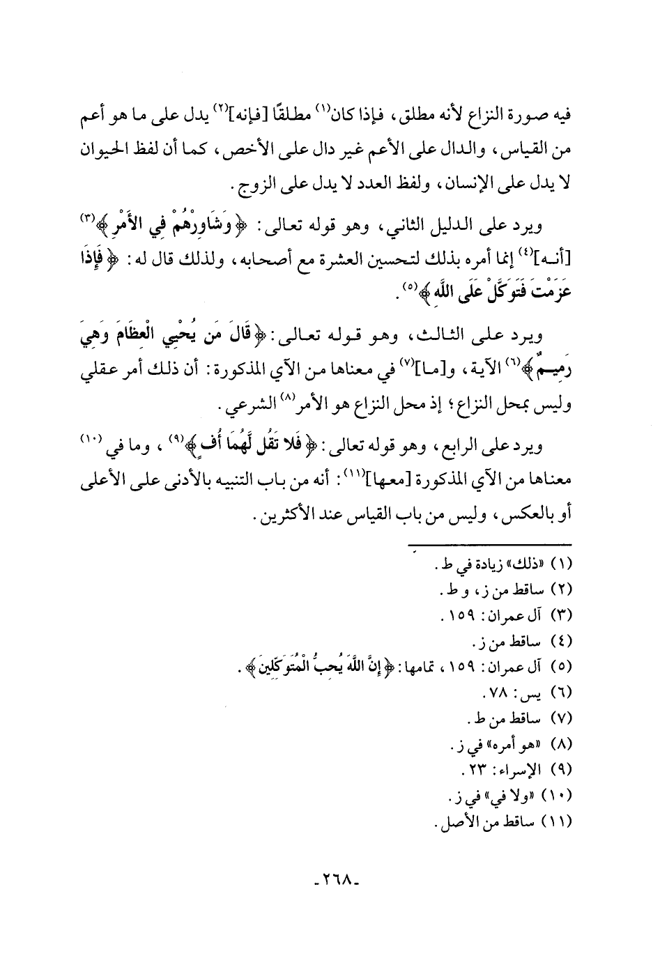 فيه صورة النزاع لأنه مطلق، فإذا كان (¬1) مطلقًا [فإنه] (¬2) يدل على ما هو أعم من القياس، والدال على الأعم غير دال على الأخص، كما أن لفظ الحيوان لا يدل على الإنسان، ولفظ العدد لا يدل على الزوج.
