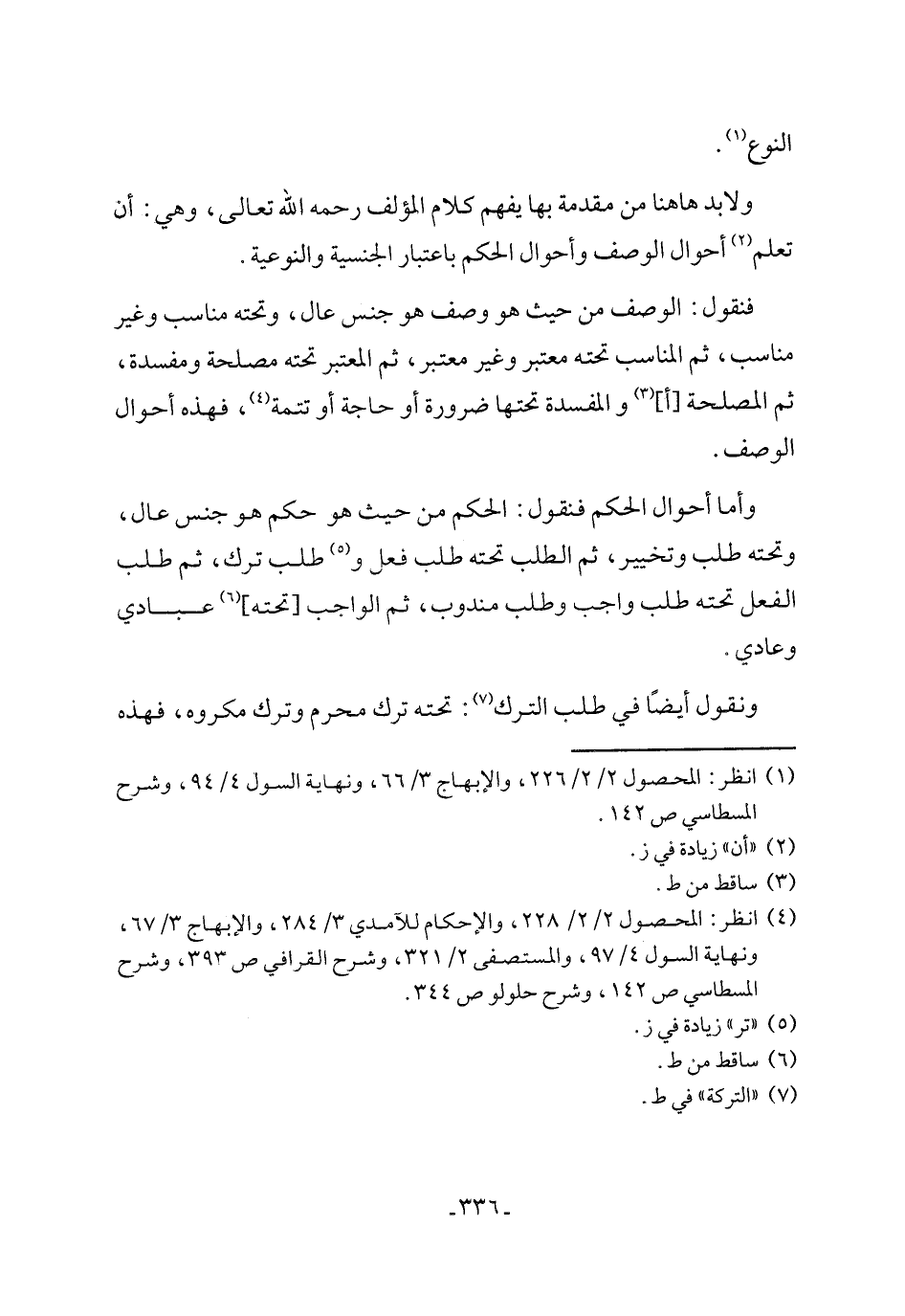 ولا بد ها هنا من مقدمة بها يفهم كلام المؤلف رحمه الله تعالى، وهي: أن تعلم (¬2) أحوال الوصف وأحوال الحكم باعتبار الجنسية والنوعية.