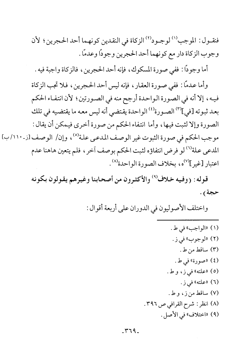 فنقول: الموجب (¬1) لوجود (¬2) الزكاة في النقدين كونهما أحد الحجرين؛ لأن وجوب الزكاة دار مع كونهما أحد الحجرين وجودًا وعدمًا.