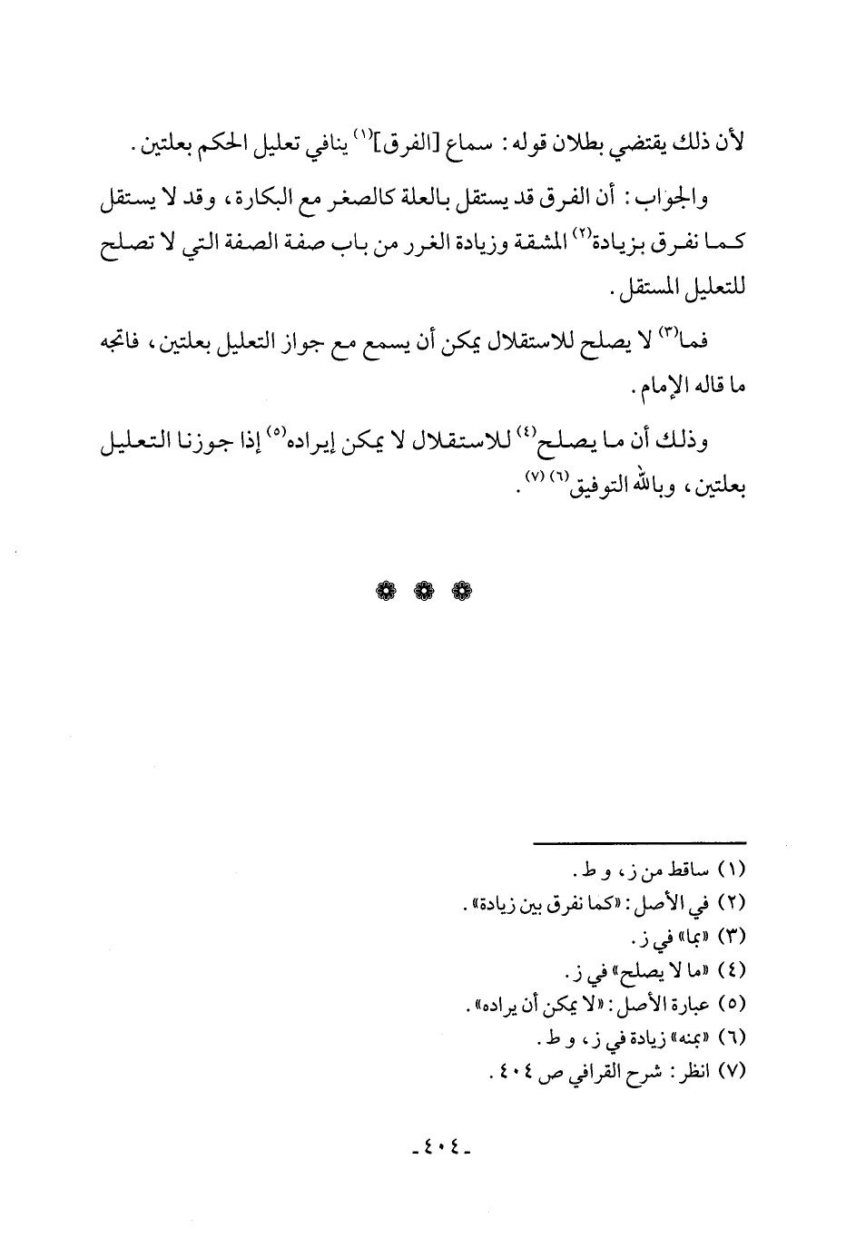 وذلك أن ما يصلح (¬4) للاستقلال لا يمكن إيراده (¬5) إذا جوزنا التعليل بعلتين، وبالله التوفيق (¬6) (¬7).
