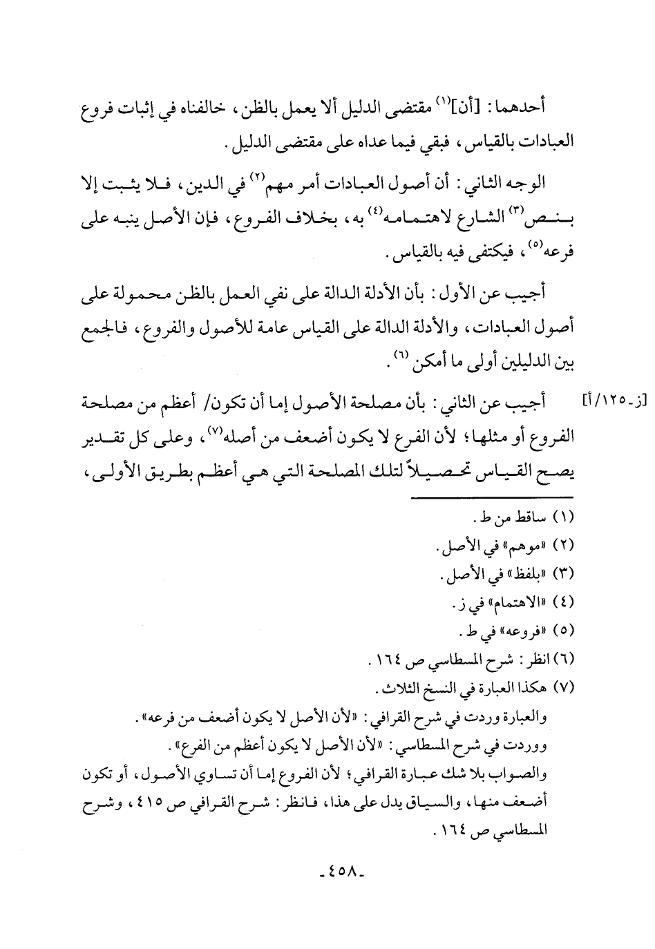 ووردت في شرح المسطاسي: "لأن الأصل لا يكون أعظم من الفرع".