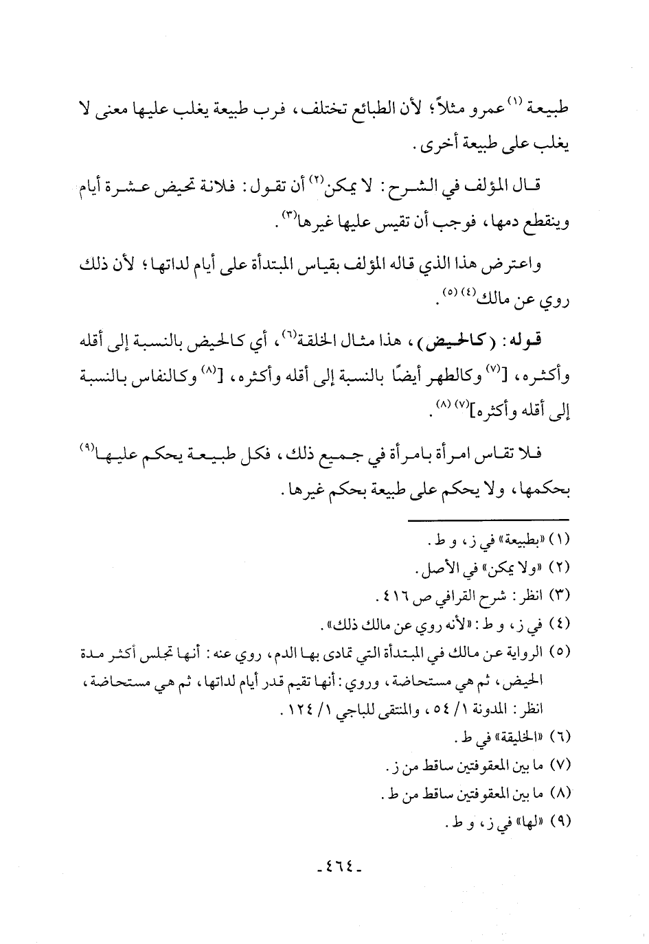 فلا تقاس امرأة بامرأة في جميع ذلك، فكل طبيعة يحكم عليها (¬9) بحكمها، ولا يحكم على طبيعة بحكم غيرها.