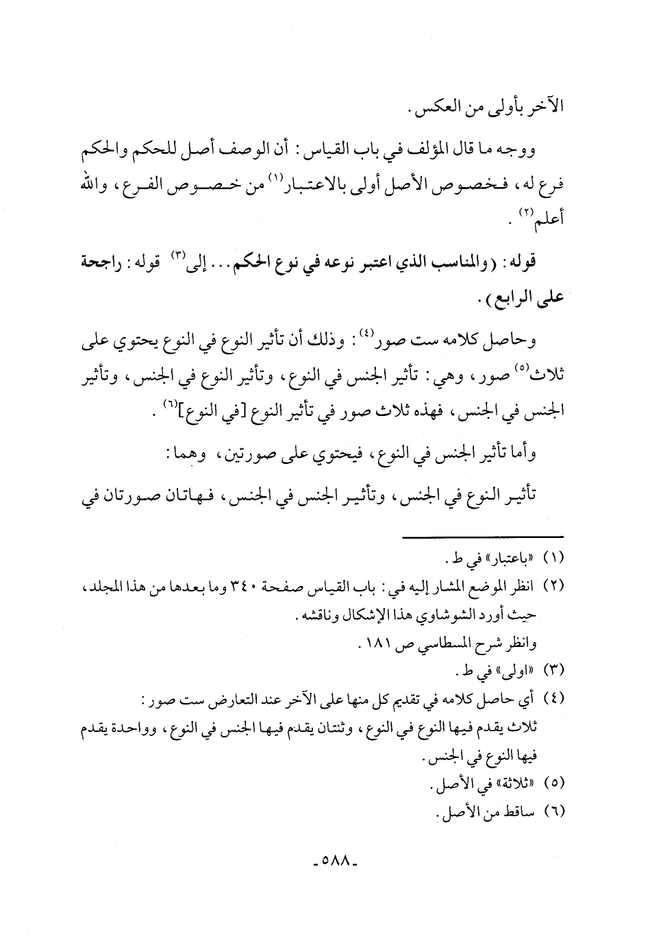 (¬2) انظر الموضع المشار إليه في: باب القياس صفحة 340 وما بعدها من هذا المجلد، حيث أورد الشوشاوي هذا الإشكال وناقشه.