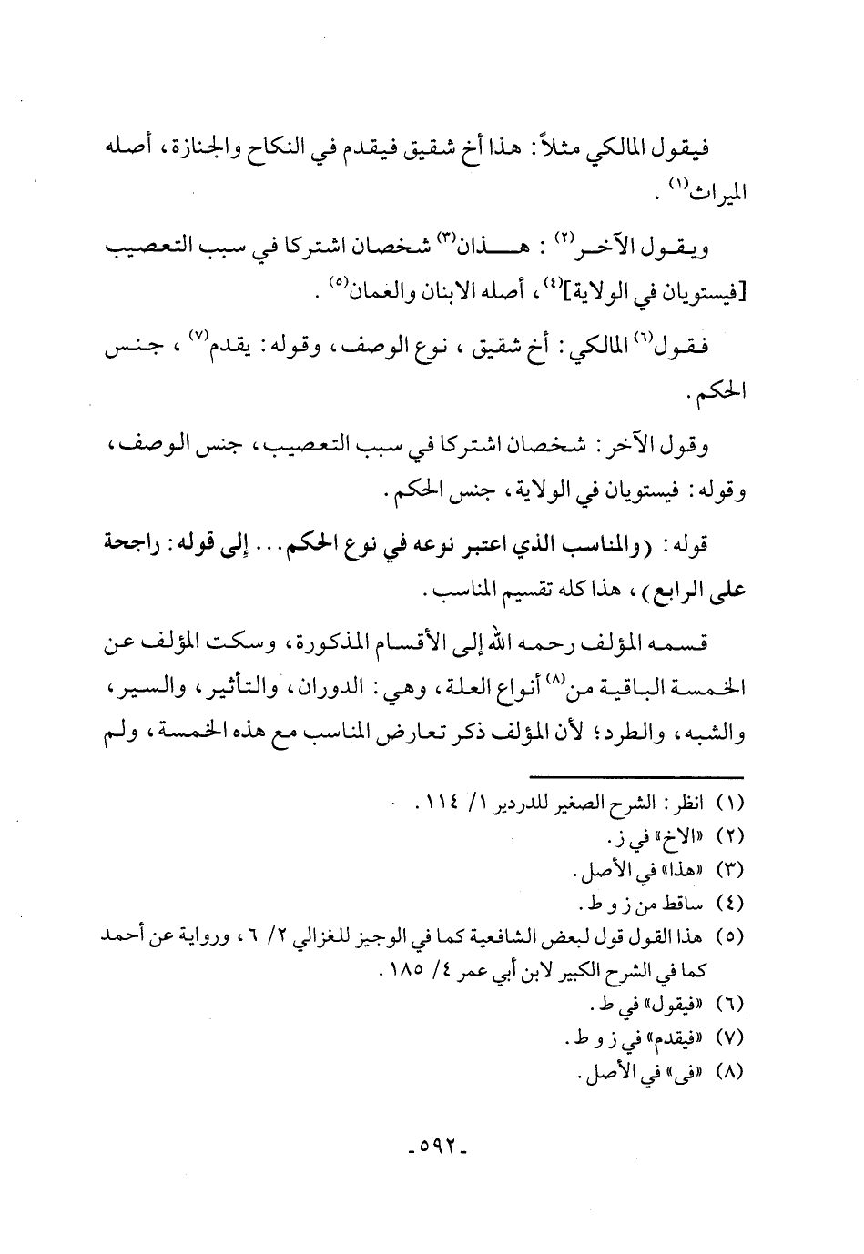 فقول (¬6) المالكي: أخ شقيق، نوع الوصف، وقوله: يقدم (¬7)، جنس الحكم.