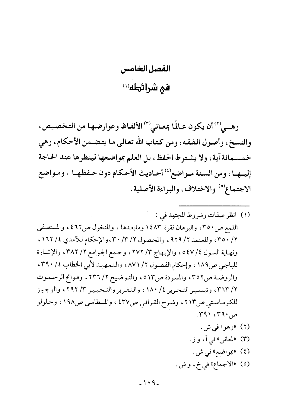 الفصل الخامس في شرائطه (¬1)